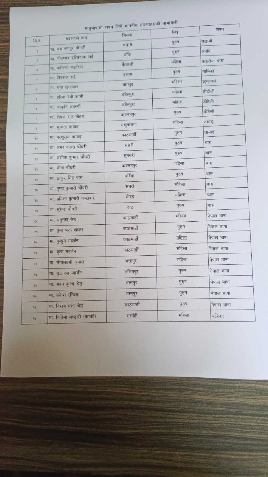 नेपाली बाहेकका १८ भाषामा ६७ जना सांसदले लिए शपथ (सूचीसहित)