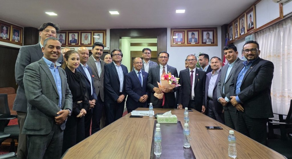 Generated by OK AI. Editorially reviewed.- नेपाल उद्योग परिसंघले अर्थमन्त्री डा. स्वर्णीम वाग्लेसँग मुलुकको अर्थतन्त्रका समस्या र समाधानबारे छलफल गरेको छ।