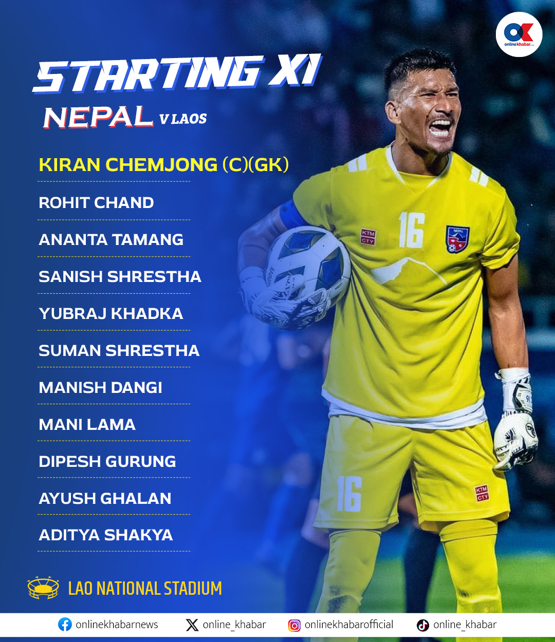 किरण चेम्जोङ कप्तान तथा गोलकिपर रहेको प्लेइङ ११ अनुसार युवराज खड्काले डेब्यू गर्ने पक्का भएको छ ।