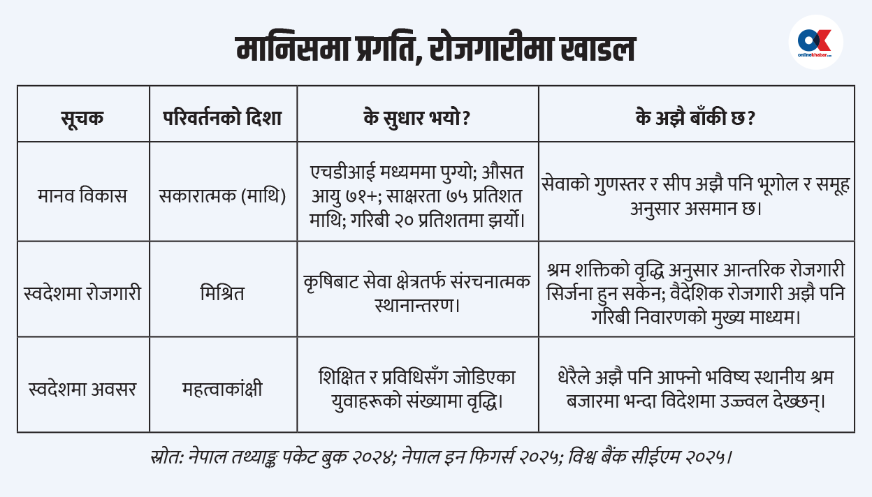 मानव विकासमा फड्को, रोजगारीमा सुस्तता