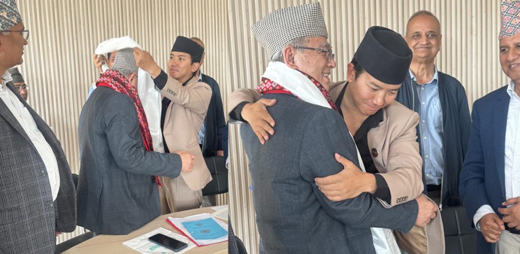 निर्विरोध निर्वाचित भएका बादललाई सुहाङले खादा ओढाएर बधाई समेत दिएका छन् ।