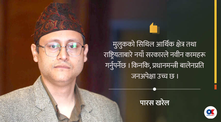 नयाँ सरकार विगतका योजना, नीति, रणनीति र मार्गचित्रको दास बन्न बाध्य छैन र रहनु हुन्न पनि । करिब १० वर्षमा विद्युत जडित क्षमता २,५०० बाट २८,५०० मेगावाट पुर्याई १५,००० मेगावाट निर्यात गर्ने लक्ष्य बोकेको ऊर्जा विकास मार्गचित्र तथा कार्ययोजना २०८० ले विद्युतलाई रणनीतिक वस्तु औपचारिक रूपमैै मान्ने मुलुकमा निर्यात गर्ने सपनासित वित्तीय प्रणालीलाई बाँधी चरम जोखिममा धकल्दैछ । याद राखौँ, नेपालको अर्थतन्त्रको आकारको हाराहारीमा लगानी जलविद्युत क्षेत्रमा सोहोरिने प्रक्षेपण गरिएको छ । यसका लागि संरचनात्मक छलाङको आवश्यकता त छ नै ।