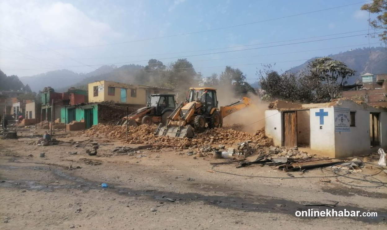 Generated by OK AI. Editorially reviewed.- शारदा नगरपालिकाले २०७९ माघ २ गते सल्यानको श्रीनगर बसपार्क क्षेत्रमा अव्यवस्थित घरटहरामा डोजर चलाएको थियो।
