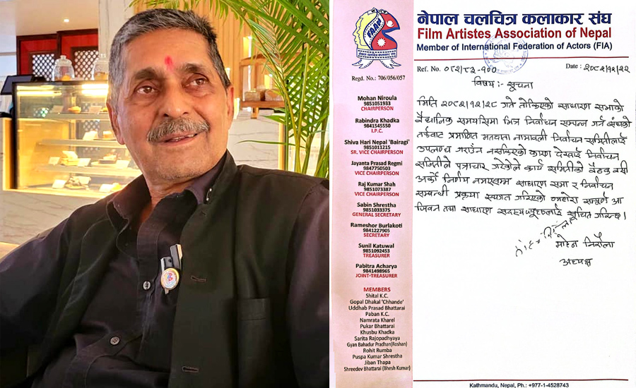 Generated by OK AI. Editorially reviewed.- चलचित्र कलाकार संघको आन्तरिक विवादका कारण २८ चैतमा तय गरिएको साधारण सभा र निर्वाचन स्थगित भएको छ।