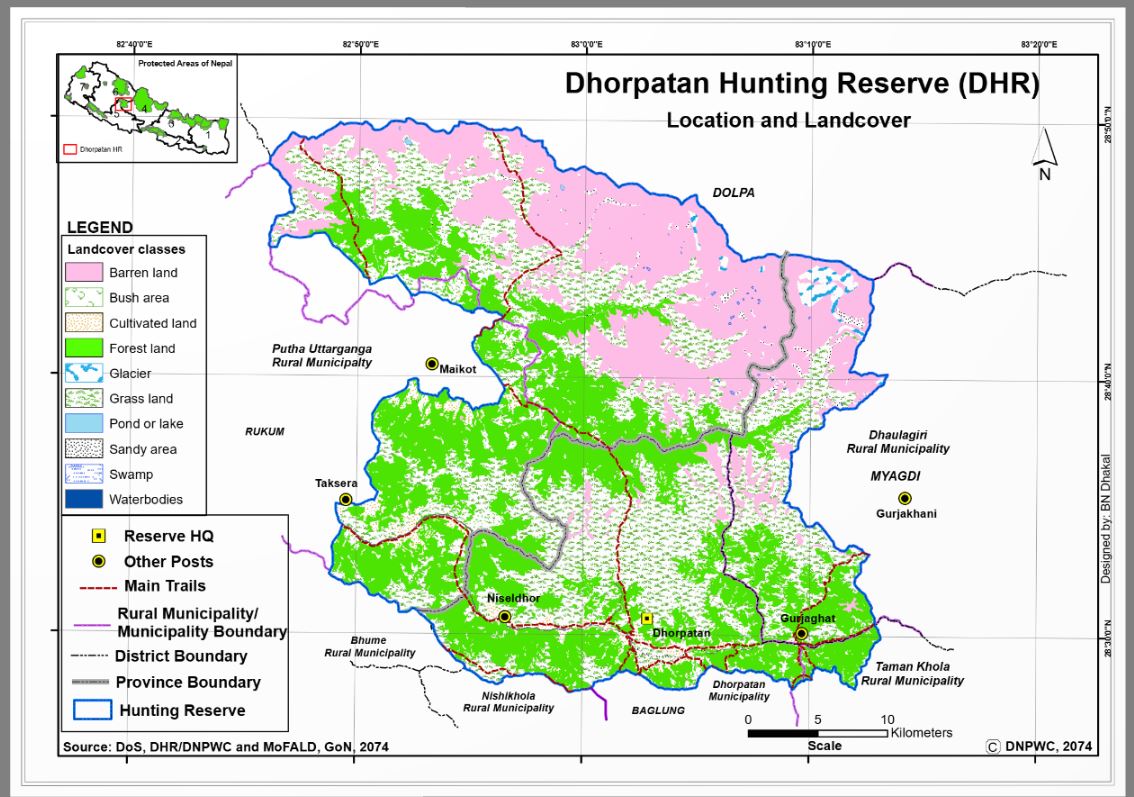२०४४ सालमा स्थापना भएको सिकार आरक्ष पूर्वी रुकुम, बागलुङ र म्याग्दी जिल्लामा फैलिएको भए पनि आरक्षको मुख्य कार्यालय भने बागलुङको ढोरपाटन उपत्यकामा पर्छ ।