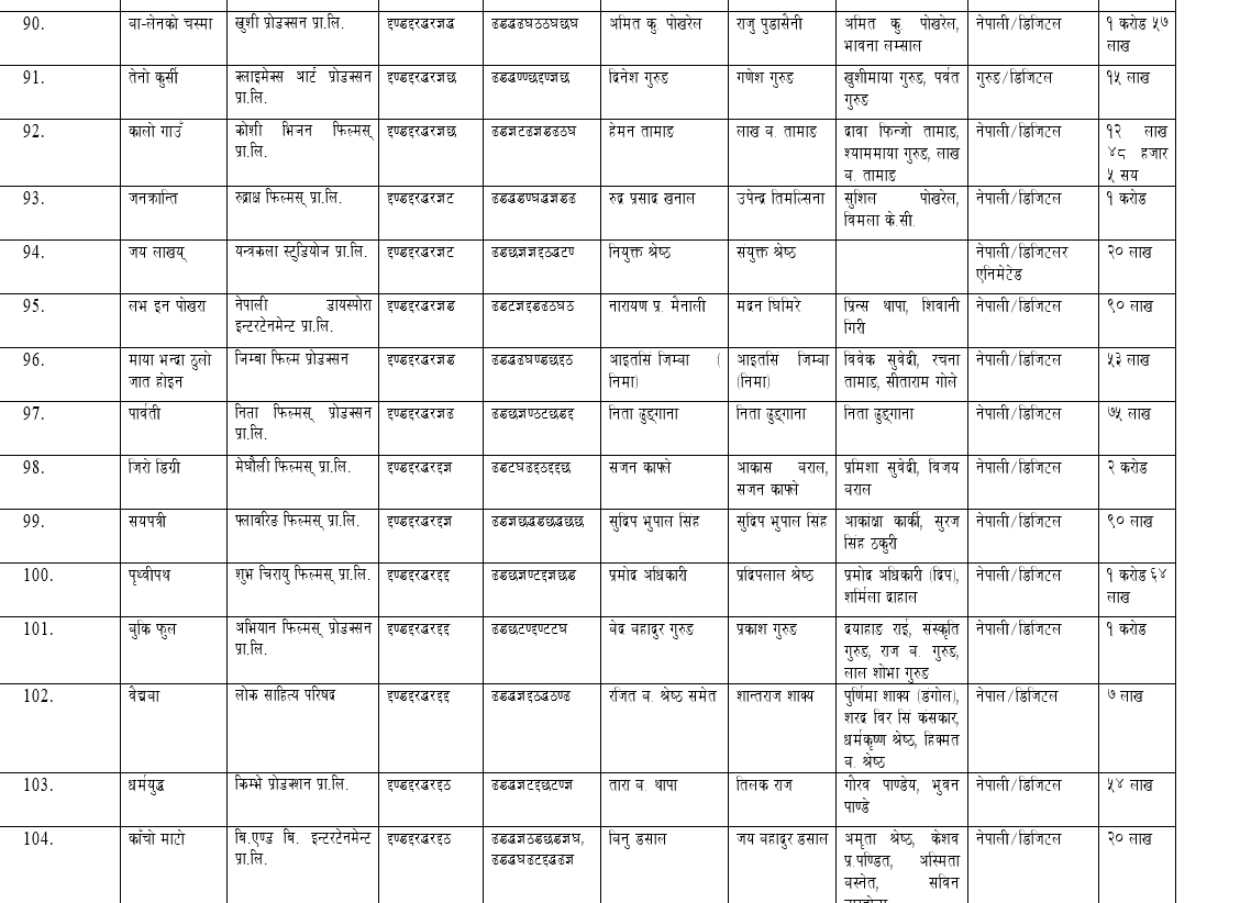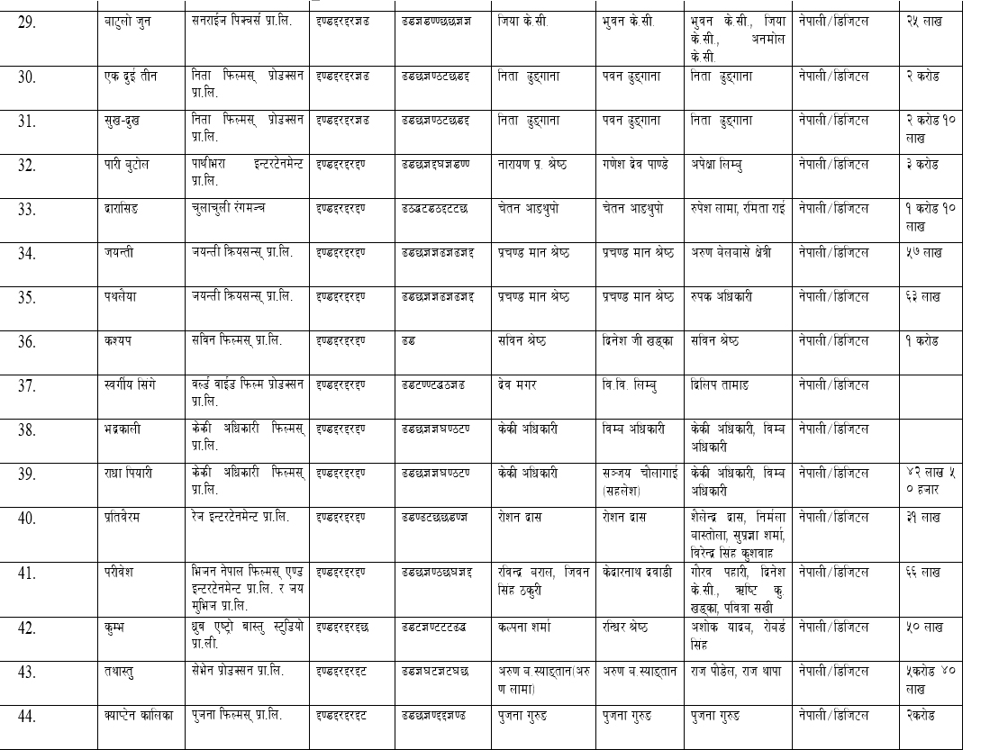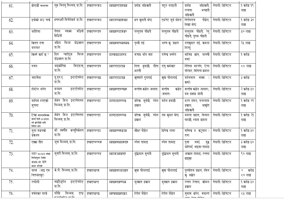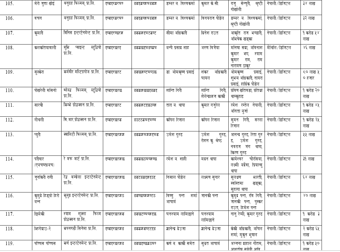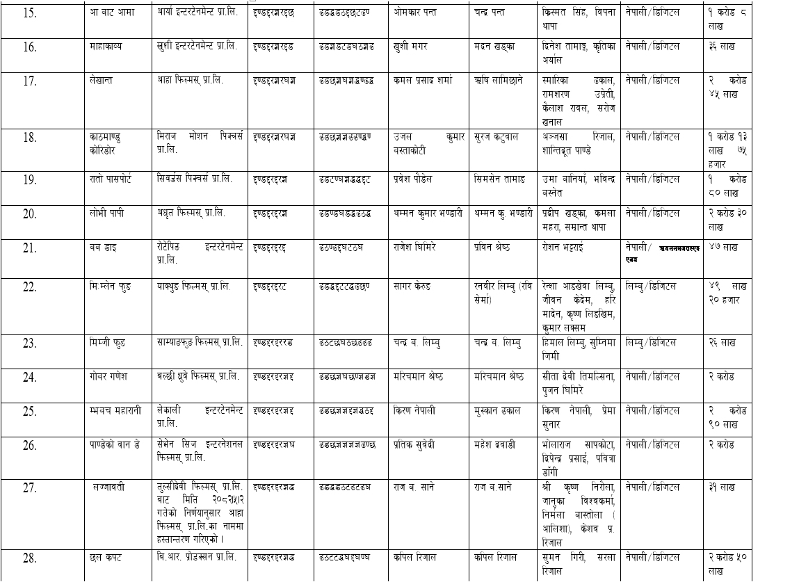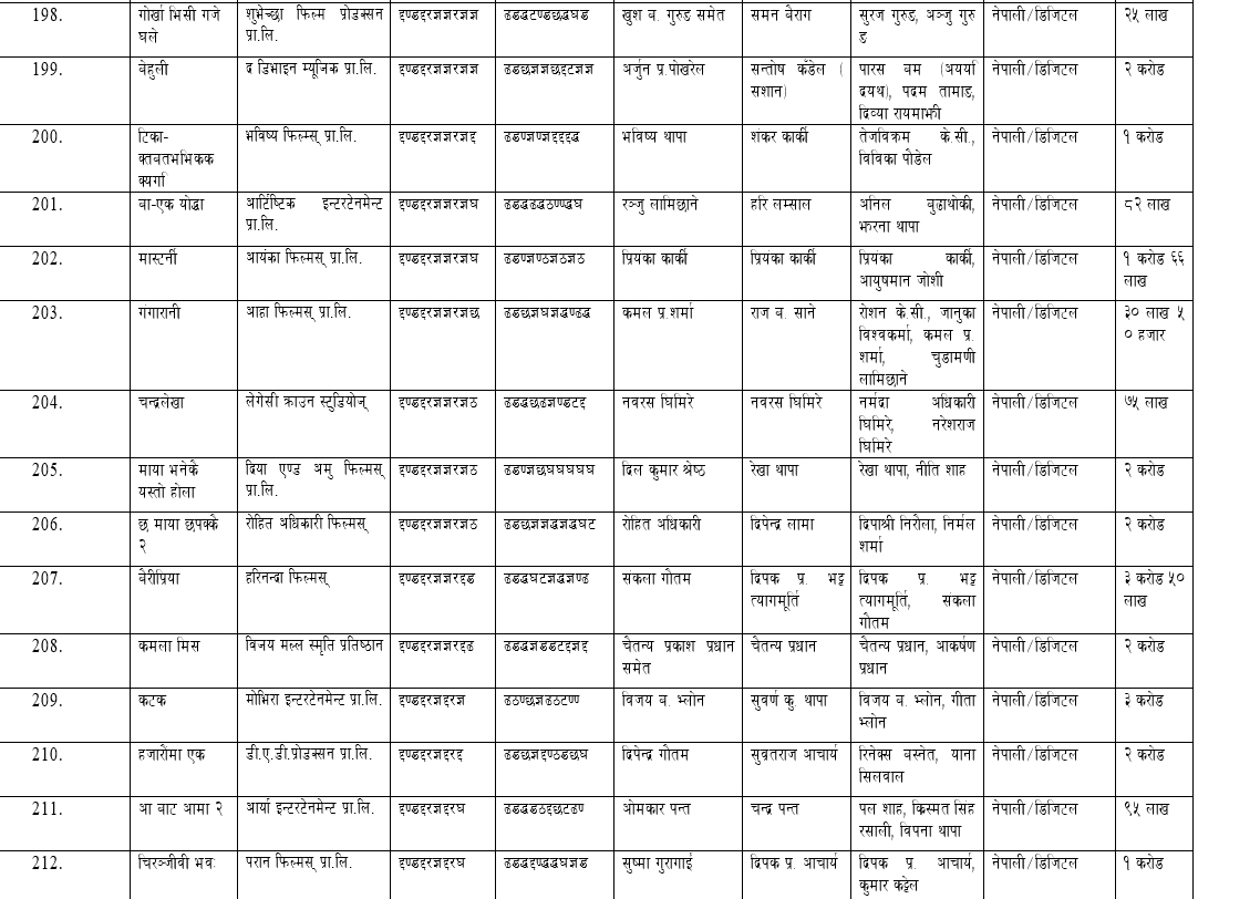 Generated by OK AI. Editorially reviewed.- चलचित्र विकास बोर्डले २०८२ सालमा कुल २३० वटा नेपाली फिल्मले निर्माण इजाजत पाएको सूची सार्वजनिक गरेको छ।