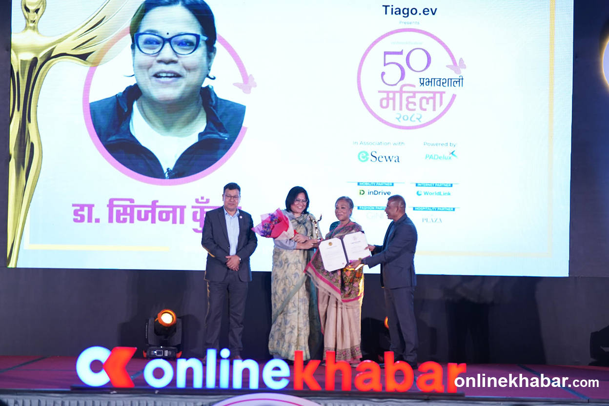 सोमबार बेलुका ललितपुरको द प्लाजामा आयोजित विशेष समारोहमा कामु प्रधानन्यायाधीश सपना प्रधान मल्लले ५० प्रभावशाली महिलाको सूची सार्वजनिक र उनीहरूलाई अवार्ड प्रदान गरिन् । उनले अनलाइनखबरले महिलाहरुको सम्मानका लागि गरेको थालेको अभियानप्रति खुसी व्यक्त गर्दै यसलाई निरन्तरता दिन सुझाव दिइन् ।