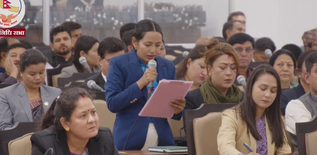 मंगलबार प्रतिनिधिसभाको बैठकमा बोल्दै उनले भनिन्, ‘त्रिशुली नदि सहितका नदिहरूमा भइरहेको नदीजन्य सामग्रीको उत्खनन् अव्यवस्थित र अनियन्त्रित हुँदा वातावरणीय सन्तुलन विग्रँदै गएको छ भने स्थानीय जनतामा समेत प्रत्यक्ष असर परेको छ ।’