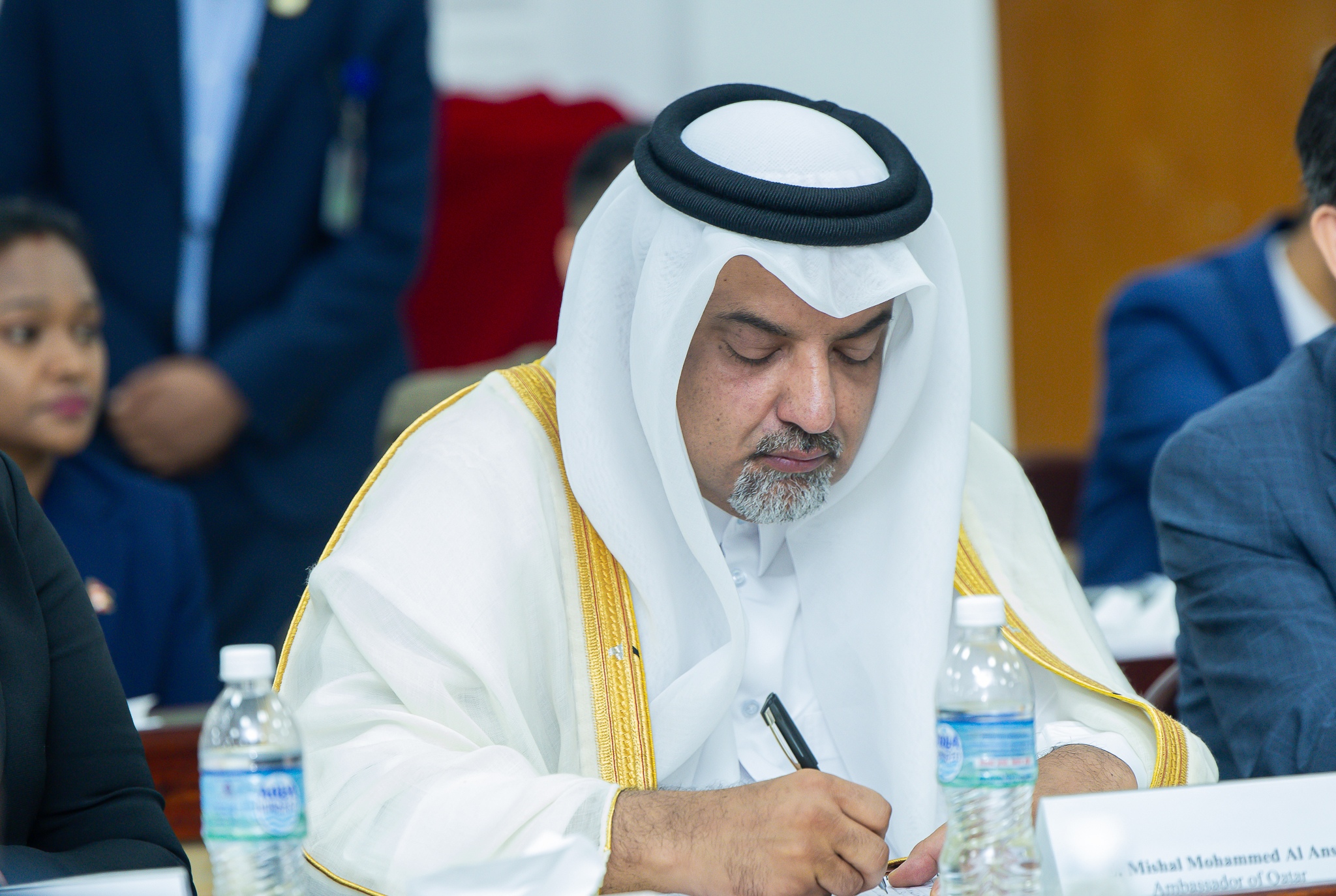 सो भेटमा भारत, पाकिस्तान, कोरिया गणराज्य, बेलायत, कतार, स्विट्जरल्यान्ड, फ्रान्स, इजरायल, जापान, बङ्गलादेश, जर्मनी, इजिप्ट, श्रीलङ्का, साउदी अरेबिया, चीन, संयुक्त राज्य अमेरिका र संयुक्त राष्ट्र सङ्घका राजदूत/नियोग प्रमुखहरूको उपस्थिति रहेको थियो ।