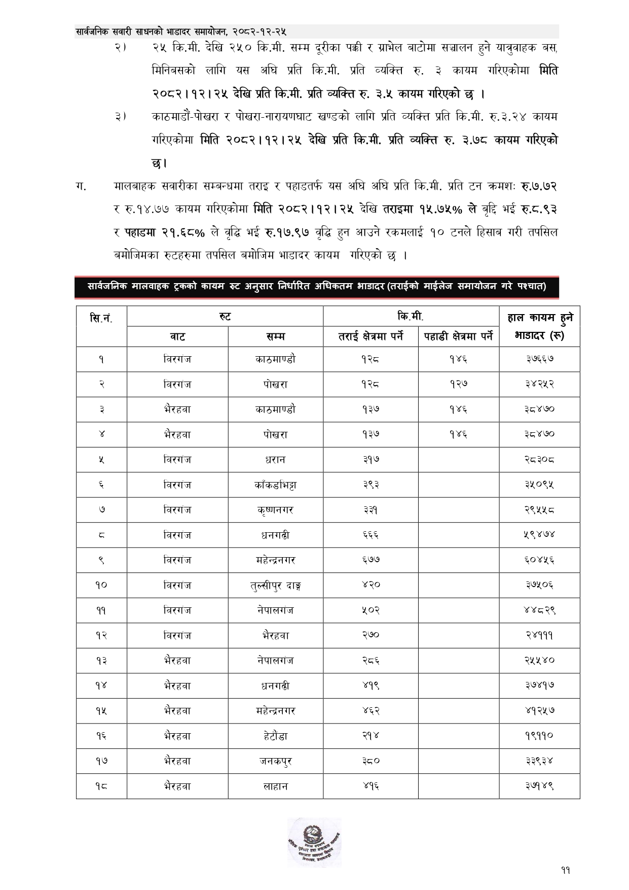- यातायात व्यवस्था विभागका अनुसार मालबाहक सवारीको भाडा पहाडी बाटोमा २१.६८ र तराईमा १५.७५ प्रतिशतले बढेको छ।