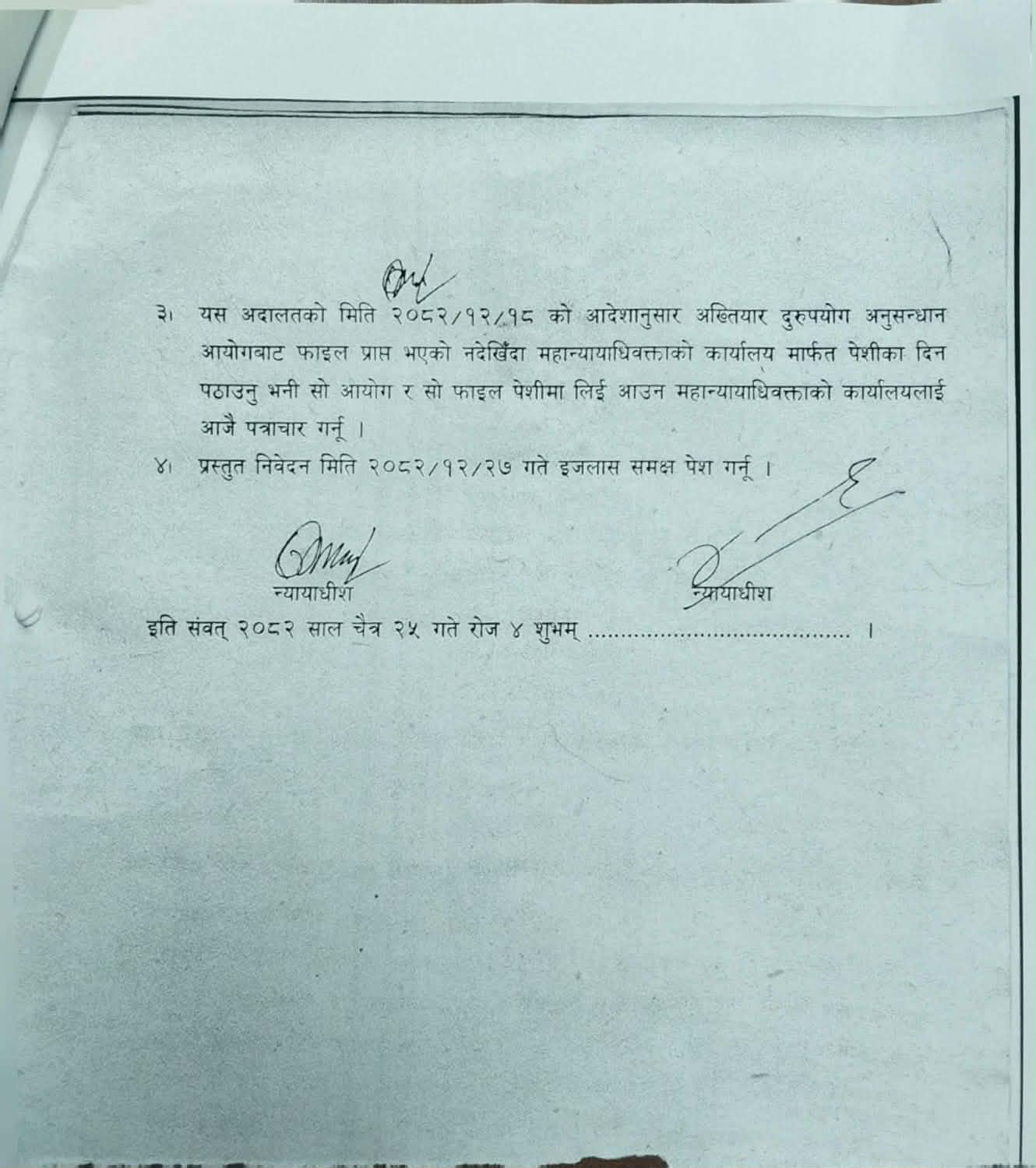 - अख्तियारले निर्णयगत भ्रष्टाचार र गैरकानूनी सम्पत्ति आर्जनको अभियोगमा खड्कामाथि अनुसन्धान गरिरहेको छ।
