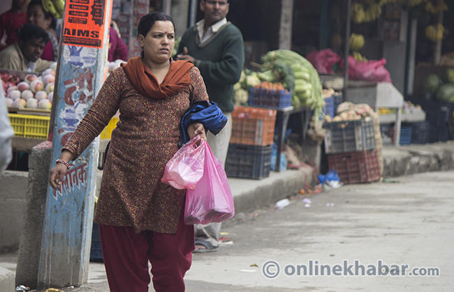 २६ चैत, काठमाडौं । उपभोक्ताले आधा किलो आलु, एक पाउ खुर्सानी वा एक मुठा साग किनुन्, पसलेले ती तीनवटै तरकारी तीन  छुट्टाछुट्टै पातला प्लास्टिकका झोलामा राखेर दिन्छन् । उपभोक्ता पनि सहजै ती झोला हातमा झुन्ड्याउँछन् र बाटो लाग्छन् ।