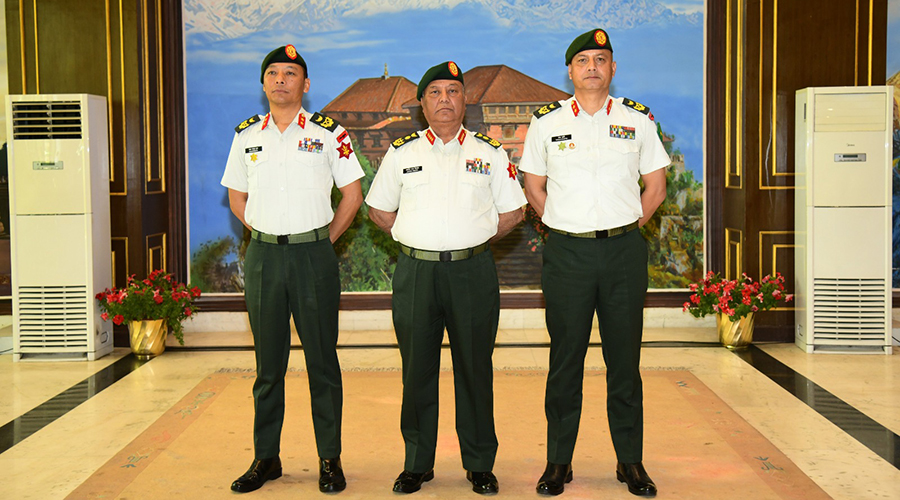 Generated by OK AI. Editorially reviewed.- प्रधासेनापति अशोकराजग सिग्देलले सैनिक मुख्यालय जंगी अड्डामा सहायक रथीबाट उपरथीमा बढुवा भएका पदम बहादुर बुढा र पन खत्रीलाई दर्ज्यानी चिह्न प्रदान गर्नुभएको छ।