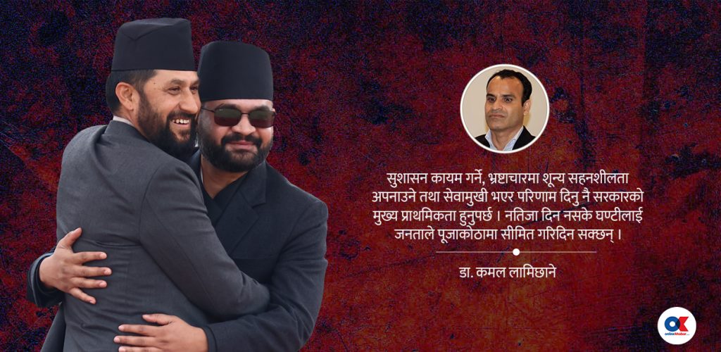 लामो राजनीतिक इतिहास बोकेका दलहरू सुशासन र सदाचारको मामिलामा स्खलित भएपछि जनताले निर्वाचनमा उनीहरूको नामसम्म सुन्न चाहेनन्। यसको अर्थ यो होइन कि अब तपाईंहरूले जसरी शासन सञ्चालन गरे पनि जनता तपाईंहरूसँगै रहनेछन्।