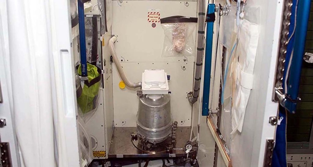 त्यहाँ माइक्रोग्राभिटीमा काम गर्न सकियोस् भनेर सक्सन सिस्टम जडान गरिएको छ । दिसालाई डिस्पोजेबल ब्यागमा राखेर थिचिन्छ र पछि पृथ्वीमा फिर्ता ल्याइनेछ ।