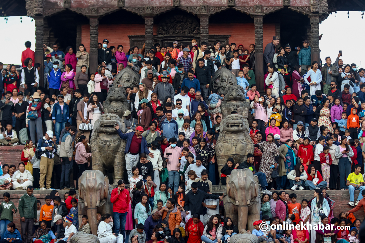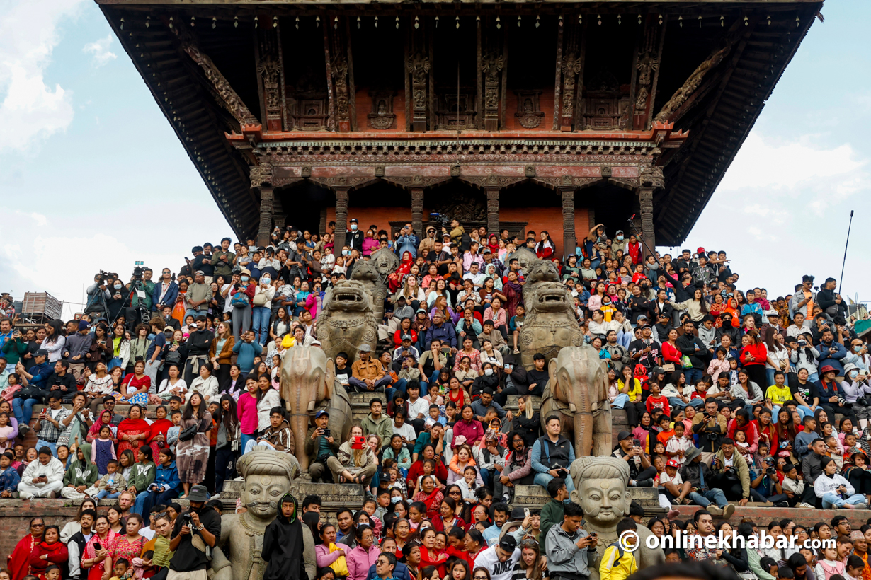 • पाँचतले मन्दिर परिसरमा धिमे बाजासहित नेवारी समुदायले विशेष सांस्कृतिक कार्यक्रम प्रदर्शन गरेका थिए।