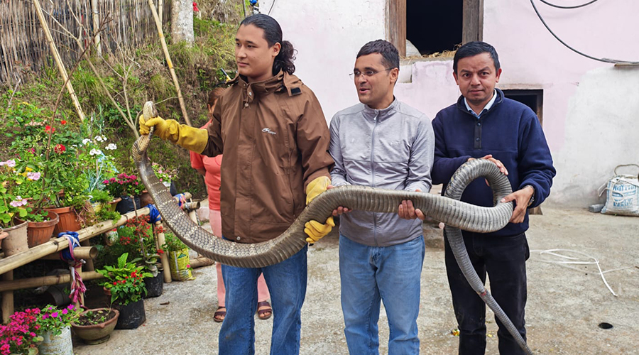 शनिबार धनकुटाको महालक्ष्मी नगरपालिका–५ लेगुवाका सर्प उद्धारकर्मी प्रदीप श्रेष्ठले उक्त सर्प सुरक्षित रूपमा नियन्त्रणमा लिएका हुन् । समुद्री सतहबाट करिब एक हजार तीन सय मिटर उचाइमा रहेको कागतेस्थित बोधप्रसाद वाग्लेको गोठमा यो सर्प तीन दिनदेखि बसिरहेको अवस्थामा फेला परेको थियो । स्थानीयवासीले खबर गरेपछि पुगेका श्रेष्ठले जोखिमपूर्ण परिस्थितिमा सर्पलाई नियन्त्रणमा लिएका थिए ।