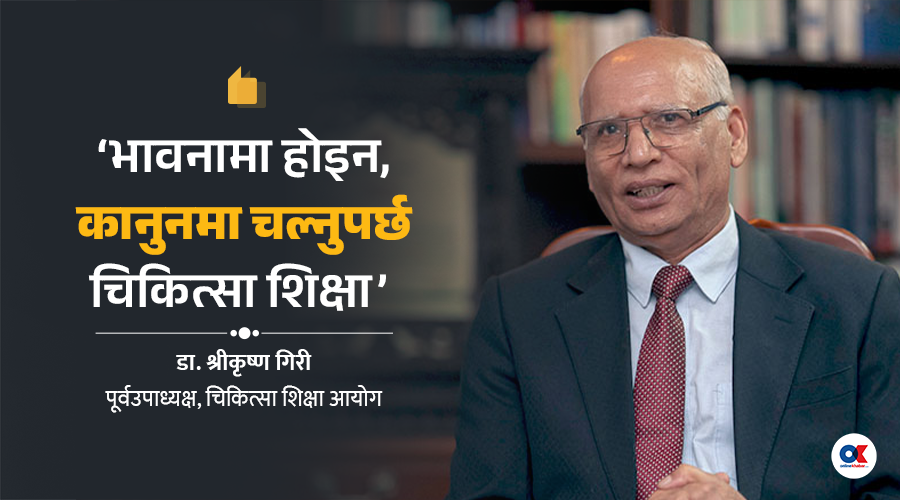 प्रस्तुत छ, यस विषयमा चिकित्सा शिक्षा आयोगका पूर्वउपाध्यक्ष डा. श्रीकृष्ण गिरीले अनलाइखबरसँग व्यक्त गरेको विचार :