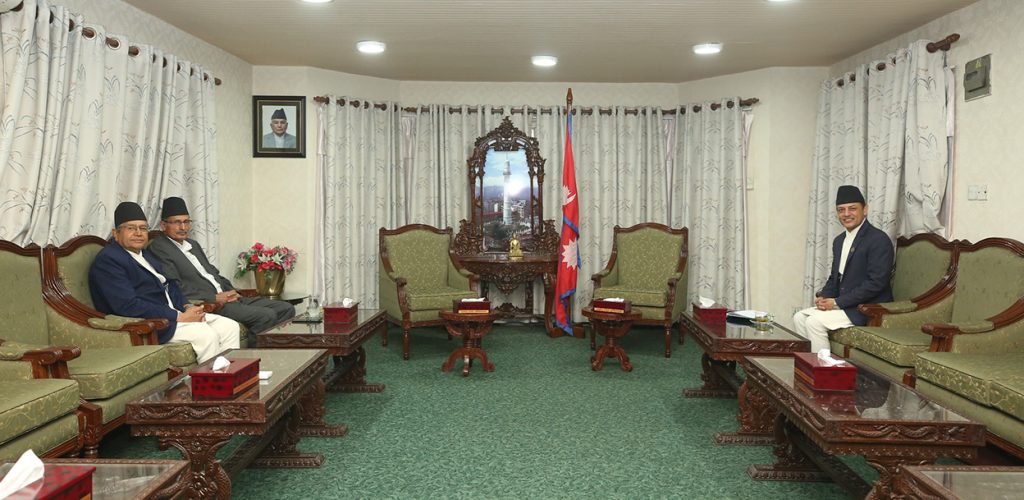 उनले आइतबार पूर्वसभामुखहरू देवराज घिमिरे र अग्निप्रसाद सापकोटासँग भेटघाट गरे ।