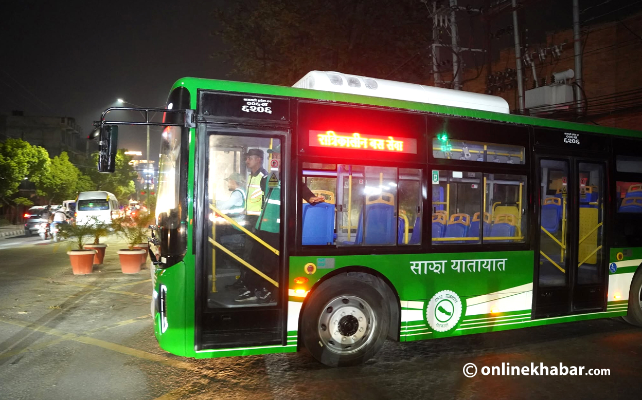 १ वैशाख, काठमाडौं । काठमाडौं महानगरपालिको संयोजनमा राजधानी उपत्यकामा आजबाट रात्रिकालीन बस सेवा सुरु भएको छ । काठमाडौं महानगरले पहल सुरु गरेपछि उपत्यकामा रहेका पालिका र साझा यातायातको सहकार्यमा रात्रिकालीन बस सेवा सुरु भएको हो ।