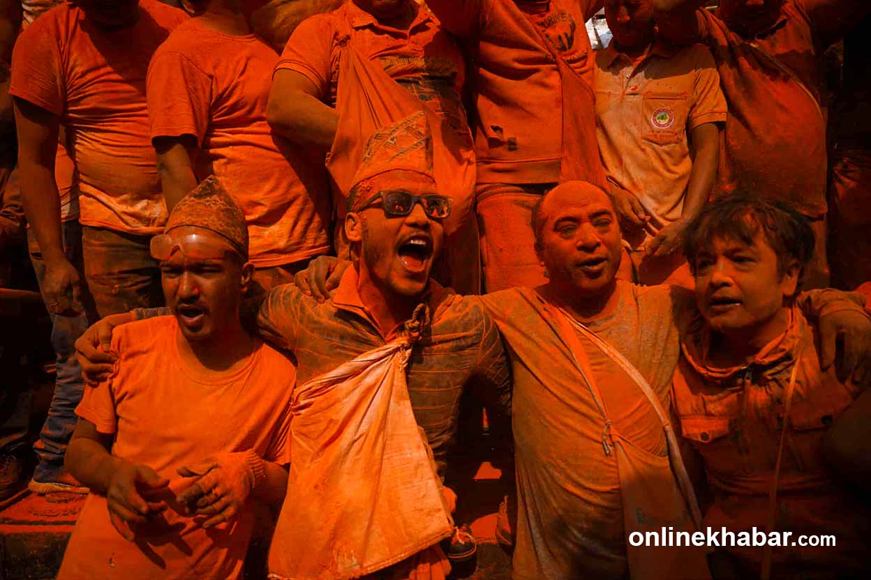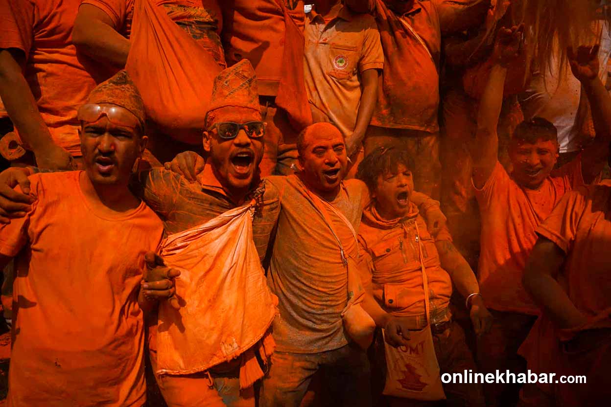 Generated by OK AI. Editorially reviewed.- मध्यपुरथिमि क्षेत्रमा बुधबार ३२ वटा खटसहितको सिन्दुर जात्रा हर्षोल्लासका साथ मनाइएको छ।
