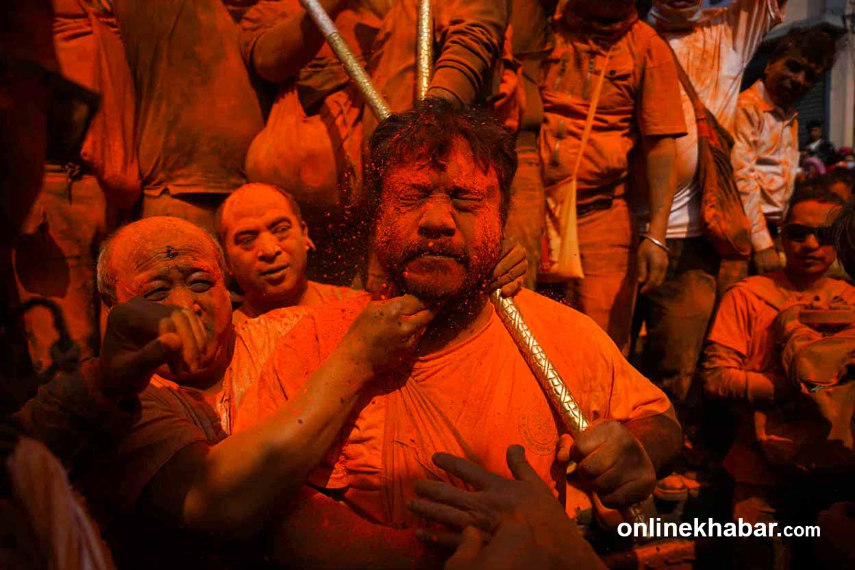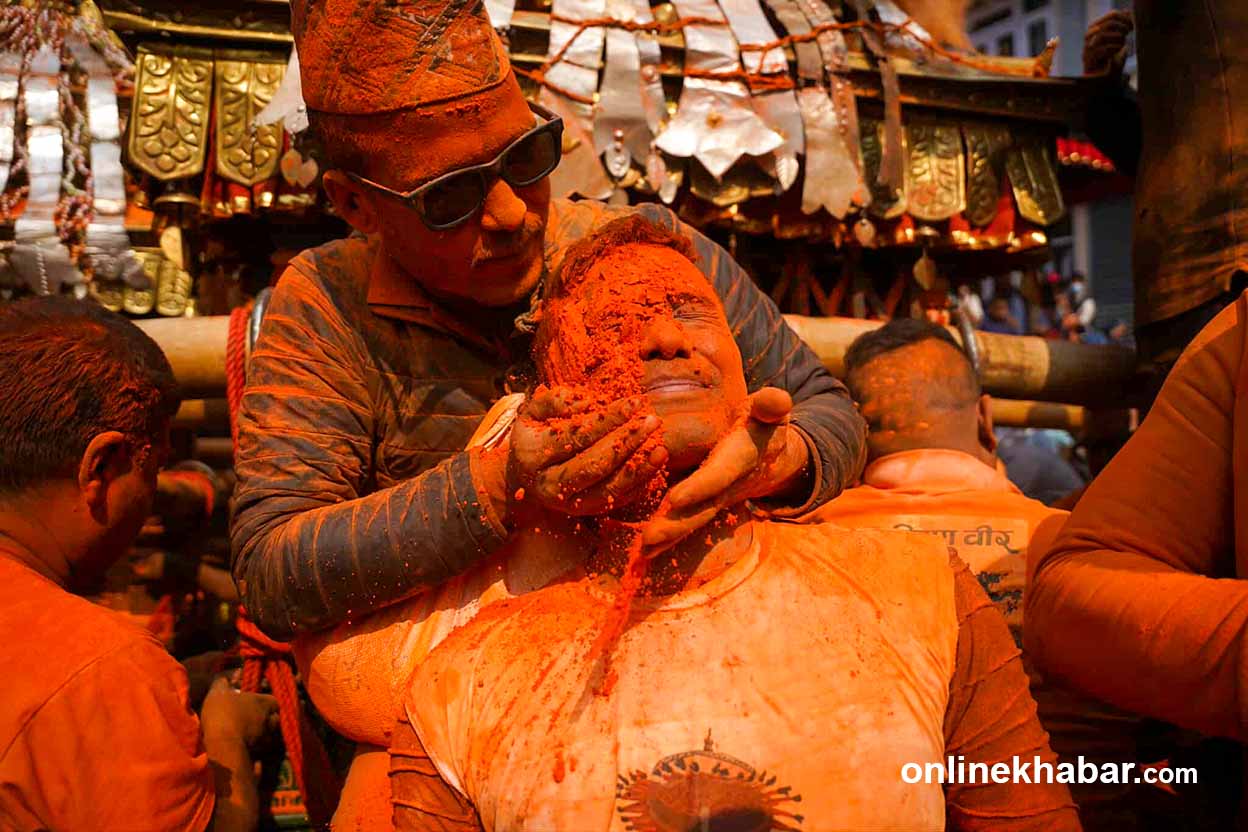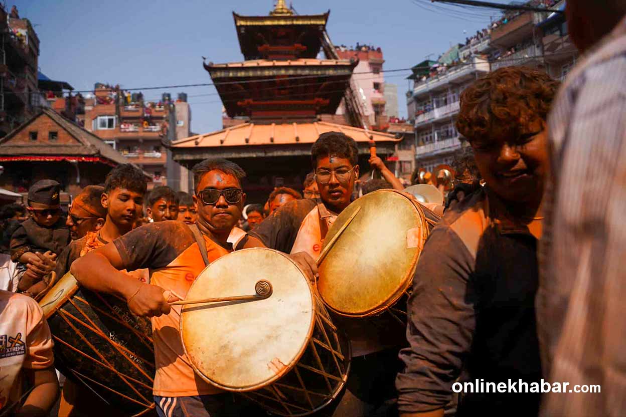 - जात्रामा काँया बाजा, भुस्याबाजा, धिमेबाजा बजाएर देवताका खटलाई घुमाउँदै सिन्दुर दल्ने प्रचलन छ।