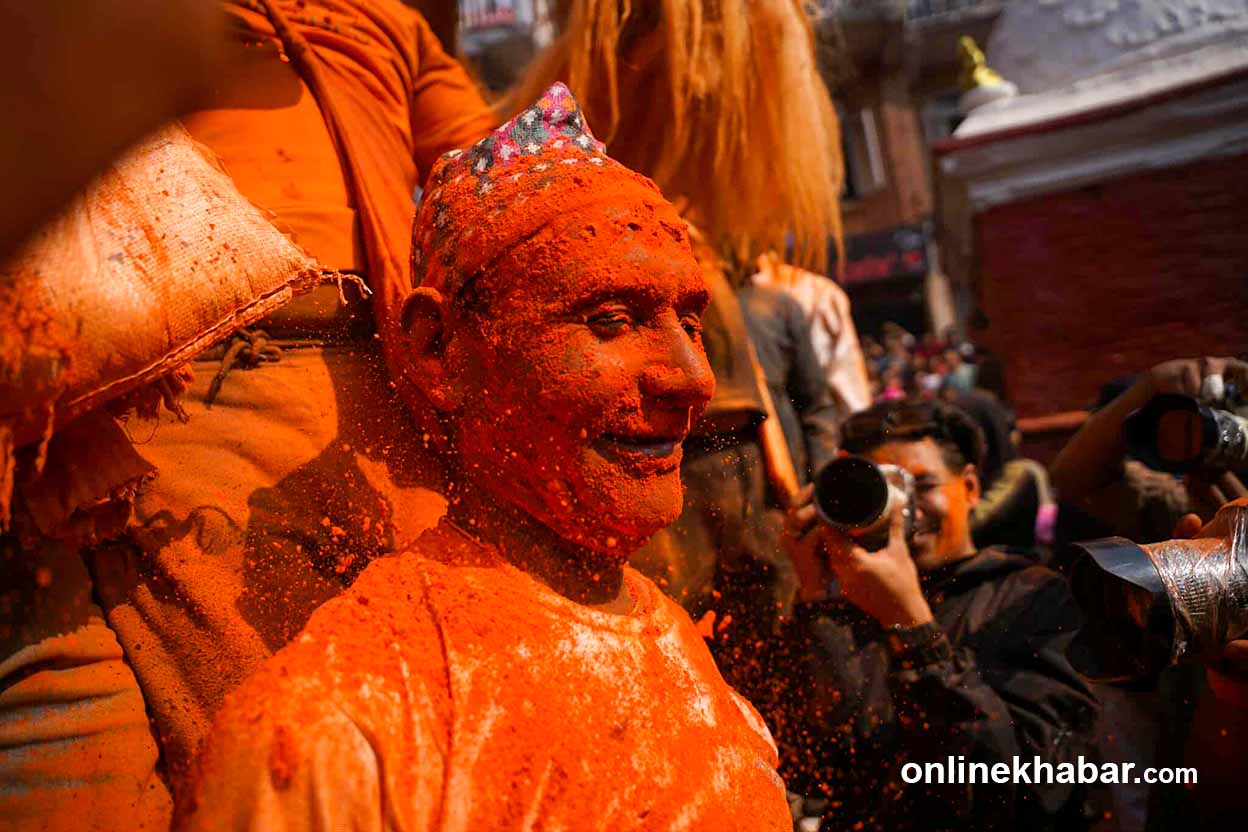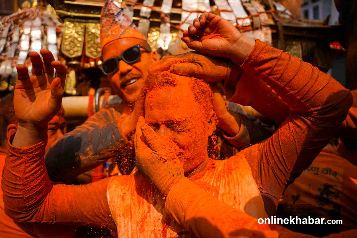 मूल देवता खटमा राखी धिमेबाजाका साथ चिराग बाली सिन्दुरे जात्रा मनाइने गरिन्छ । जात्रा प्रत्येक चोक, चौबाटो, घर र टोलमा पुग्दा घरका झ्याल, कौसी र छतबाट सिन्दुर छर्ने, फूल बर्साएर स्वागत गर्ने प्रचलन छ ।