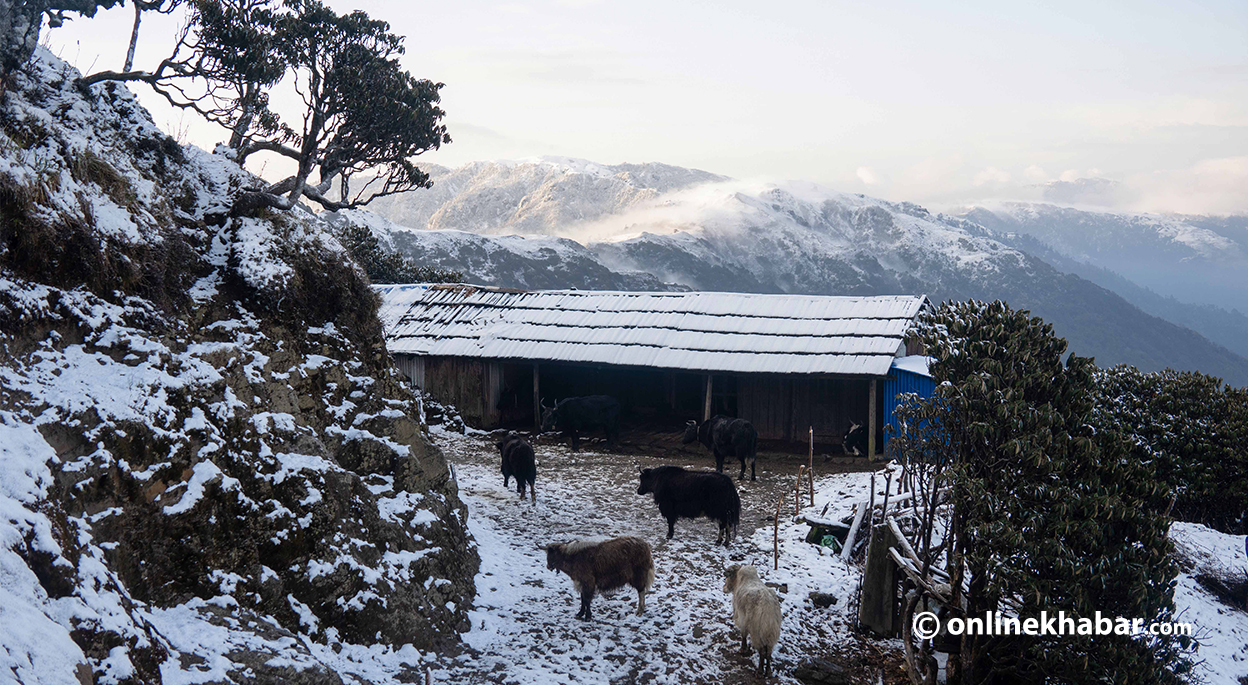 ३ वैशाख, पाँचथर । बिहान घामको झुल्को देखिएको थिएन । तर हिउँले गोठका छानो छोपिसकेको थियो । गोठको आगनमा चौँरी भेला भइसकेका थिए ।