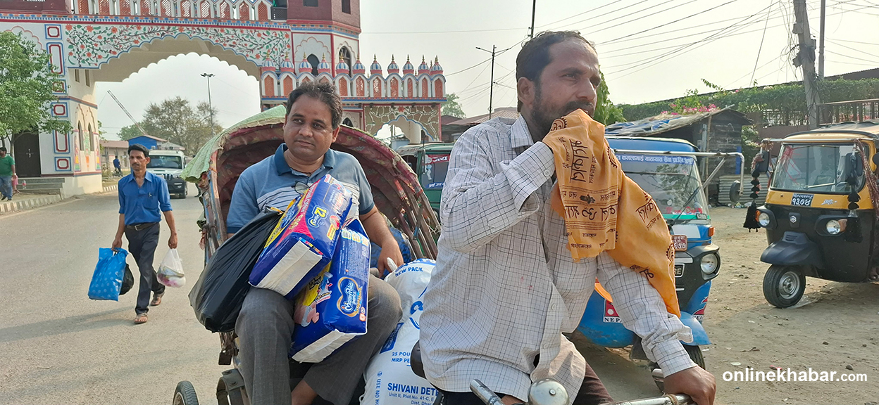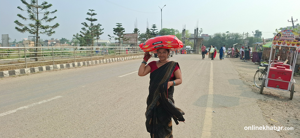 ६ वैशाख, जनकपुरधाम । शनिबार दिउँसो साढे ३ बजेतिर टाउकोमा चामलको बोरा बोकेर भारतीय बजार भिठामोडबाट नेपाल छिरेकी महोत्तरी, जलेश्वरकी संगीता यादव त्रसित थिइन्। चामलसहित अन्य केही सामान किन्न सीमा पारि पुगेकी उनले सय रुपैयाँभन्दा बढीको सामानमा भन्सार तिर्नुपर्ने नियम त्यहीँ थाहा पाइन्। त्यसपछि उनी २० किलोको एक बोरा चामल मात्र लिएर फर्किँदै थिइन्।