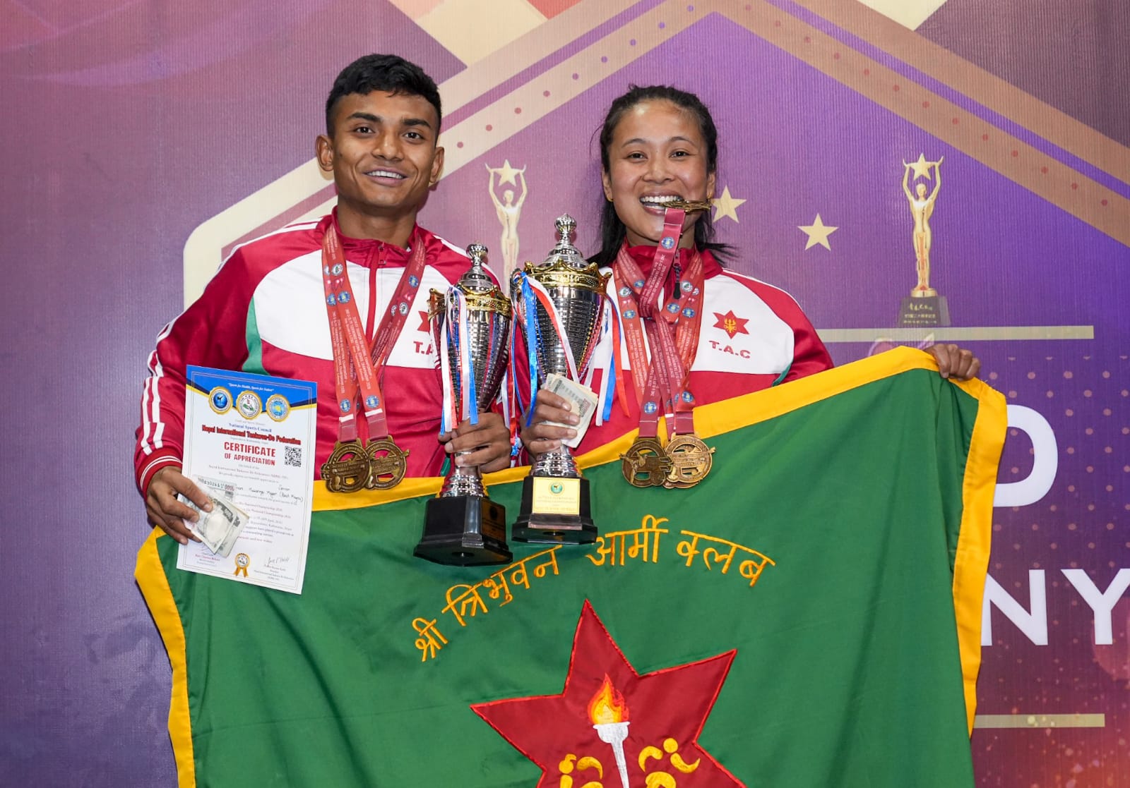 नेपाल अन्तर्रास्ट्रिय तेक्वान्दो महासंघ (एनआइटीएफ) को आयोजनामा त्रिपुरेश्वरस्थित राष्ट्रिय खेलकुद परिषद् (राखेप) को कभर्डहलमा सम्पन्न दुईदिने प्रतियोगितामा आर्मीले १९ स्वर्ण, ४ रजत र ९ कांस्य जितेर च्याम्पियन बनेको हो ।