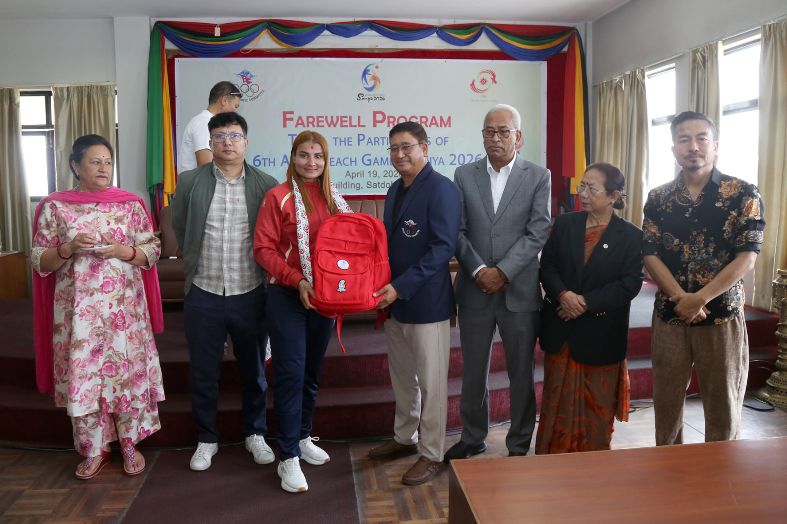 नेपाल ओलम्पिक संघ(एनओसी) ले आइतबार कमिटीको कार्यालय सातदोबाटोमा खेलाडीहरुलाई बिदाइ गरेको हो । चीनको सान्यामा हुने छैटौं एसियन बीच गेम्सका लागि नेपालको तर्फबाट २ वटा खेलले सहभागिता जनाउनेछ ।