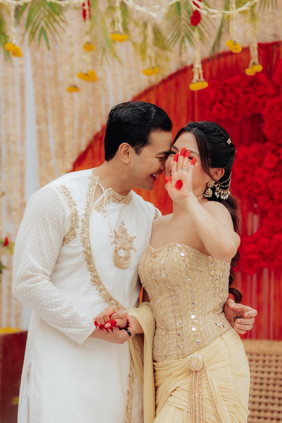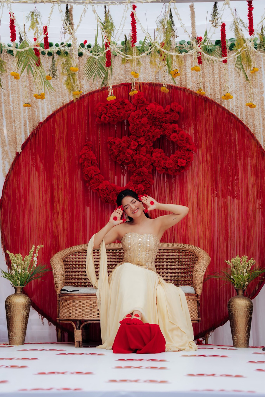 उनले लेखेकी छिन्, ‘मेरो हातहरू बिस्तारै त्यो गहिरो रातो रङले रङ्गिएका छन्, मानौँ प्रेम आफैँले त्यहाँ आफ्नो घर बनाएको हो, । रातो रङ समारोहको शान्त र आत्मीय क्षणमा, यति धेरै मायाले घेरिएको वातावरणमा, हामीले हरेक नबोलेका वाचा र कोमल आशीर्वादहरू हावामा महसुस गर्न सक्थ्यौँ ।’