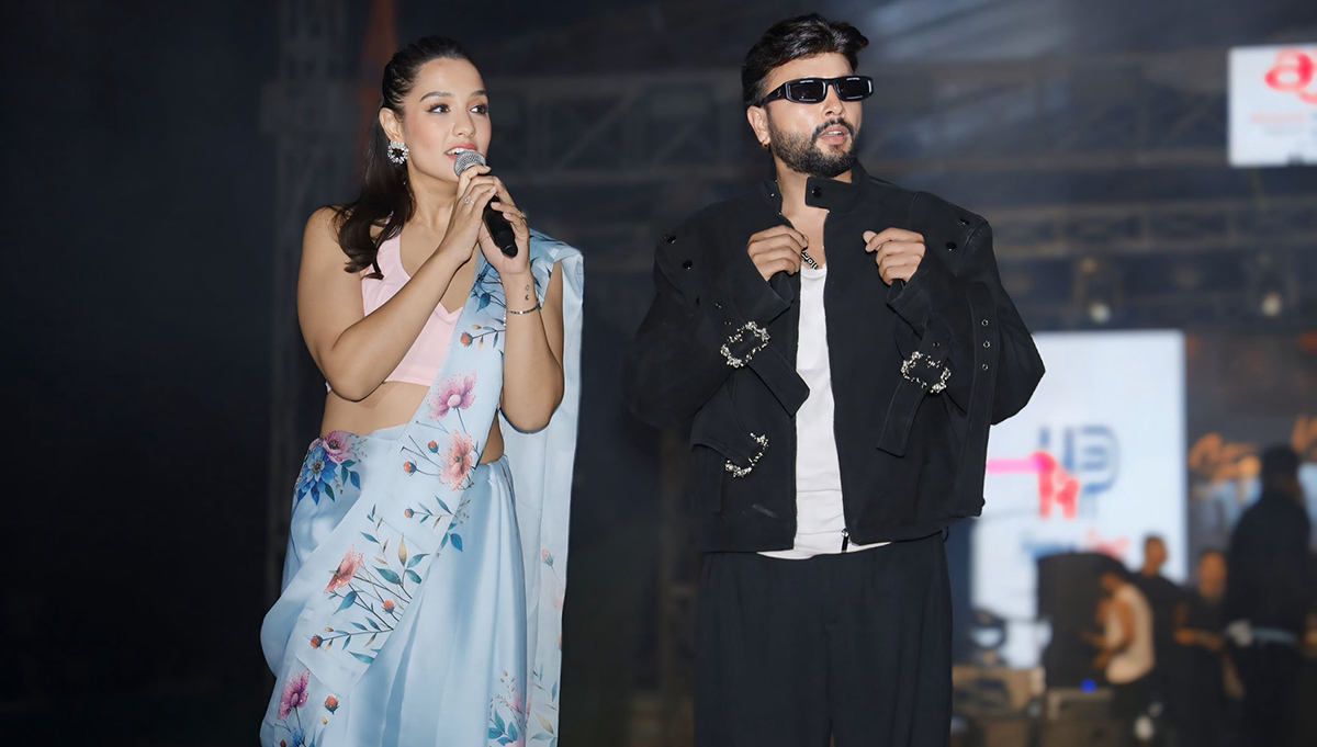 क्रेनले उनलाई मञ्चतर्फ लग्यो । केही सेकेन्ड आकाशमा होल्ड भएर उनी मञ्चमा उत्रिए । त्यसपछि स्टेज डान्सरहरूसँगै मञ्चमा नायिका प्रियंका कार्की पनि देखा परिन् । क्विक इन्फर्मेसन- ‘दुस्मन हेरेको हेर्यै’ मा कार्की पनि फिचर्ड छिन् ।