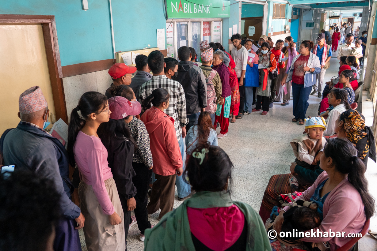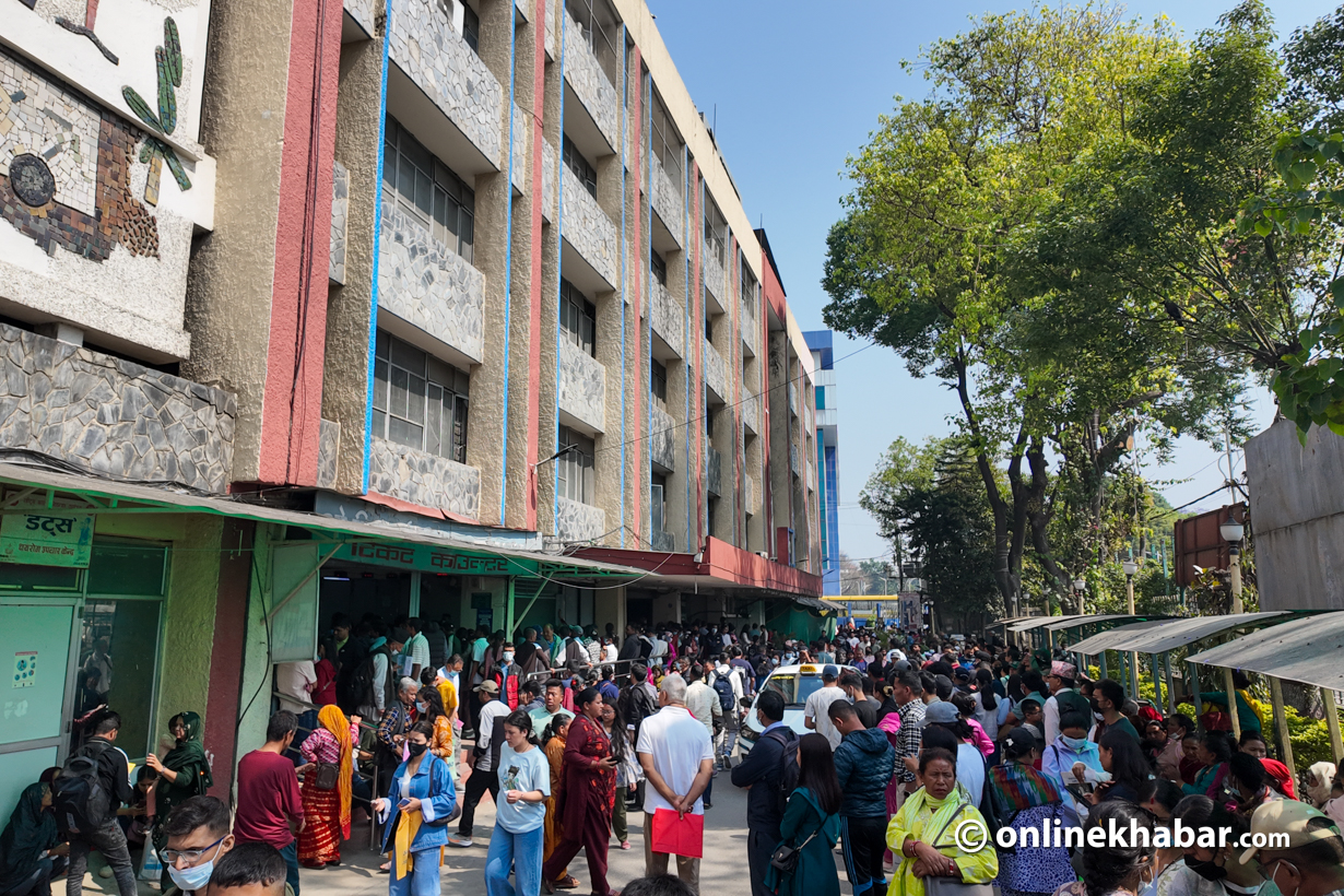 सबैको एउटै गन्तव्य छ– ओपिडी टिकट । टिकट काउन्टरमा कोचाकोच छ । अस्पताल परिसरमा बिरामी र आफन्त लामबद्ध छन् ।