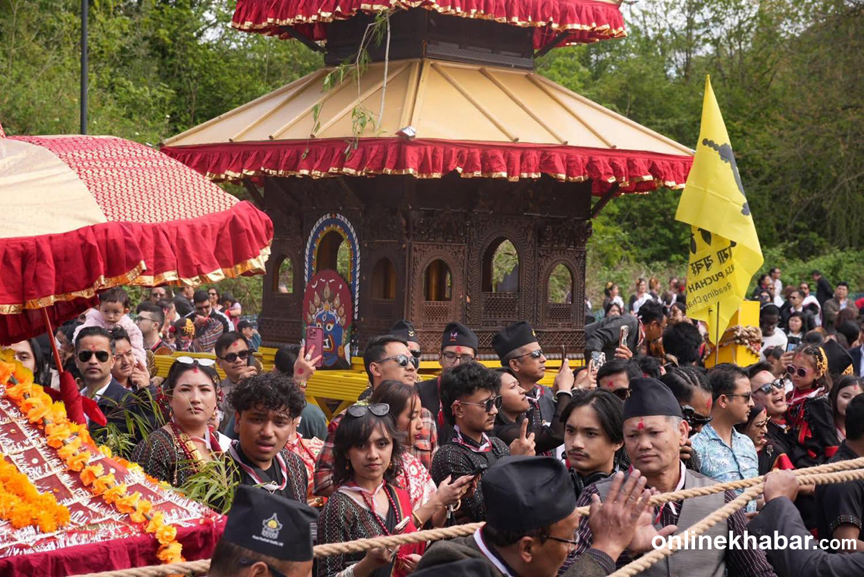 पासा पुच: गुथी यूकेले लन्डनस्थित नेपाली दूतावासको सहकार्यमा १९ अप्रिल आइतबार गरेको ‘लन्डन बिस्का’ जात्रा भक्तपुरको झझल्को दिने गरी उत्साहपूर्वक सम्पन्न भएको छ ।