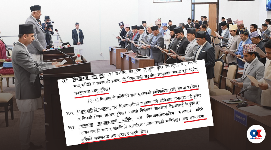प्रतिनिधिसभा नियमावली २०७९ मा उल्लेख्य केही परिमार्जनसहित तयार पारिएको नयाँ नियमावली मंगलबार सभामुख डोलप्रसाद अर्याललाई बुझाइएको छ । नयाँ नियमावलीमा थपिएको एउटा ‘नियम २५९’ अर्थपूर्ण छ ।