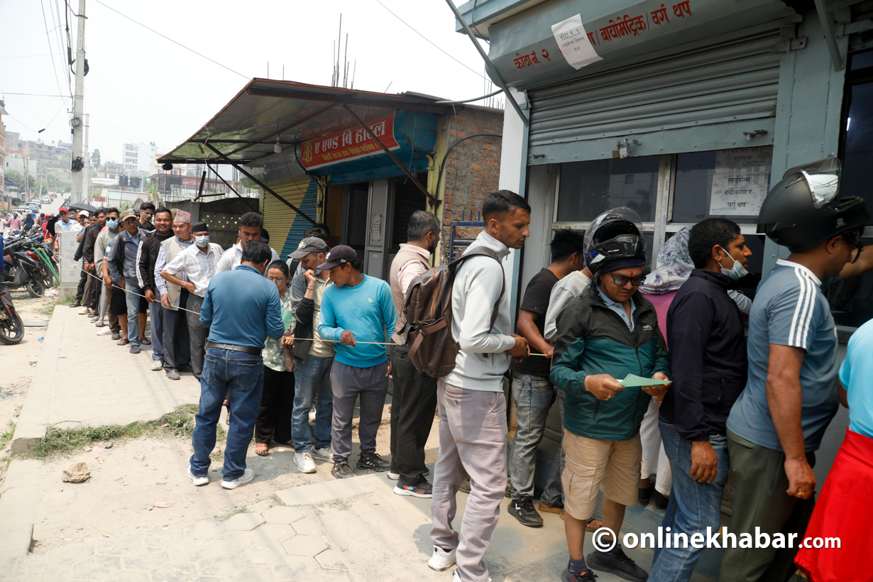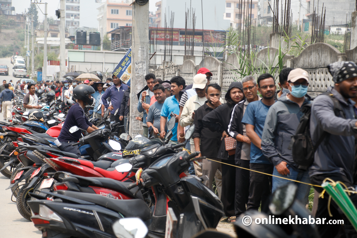 - मंगलबार बिहानैदेखि भक्तपुरमा लाइसेन्स लिनेहरू लामबद्ध भएर लाइनमा बसेका छन्।