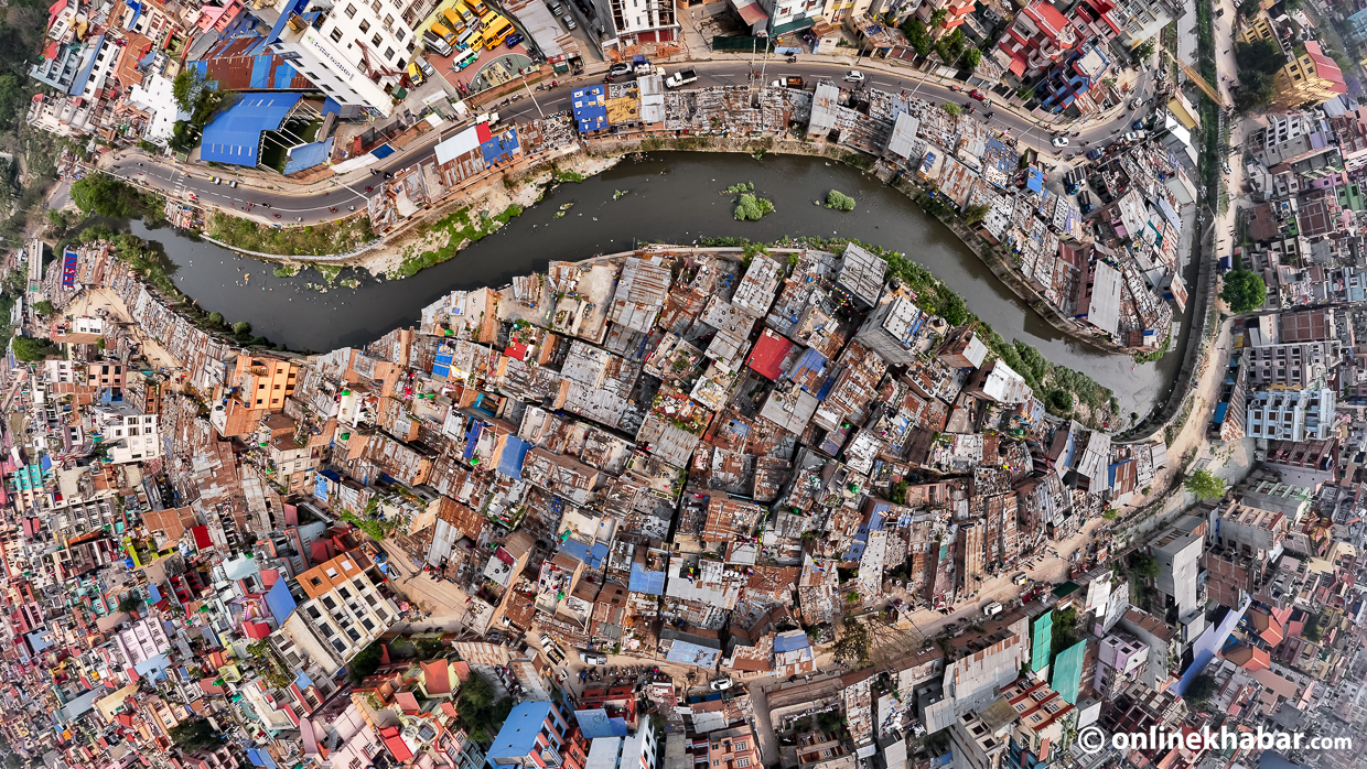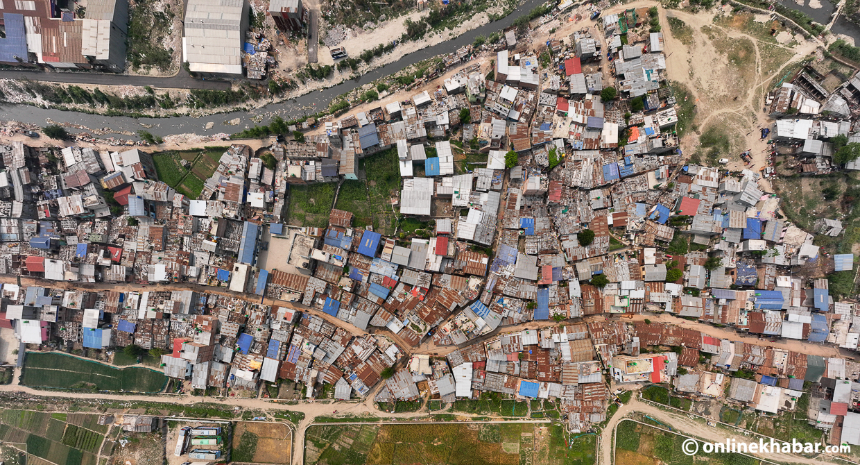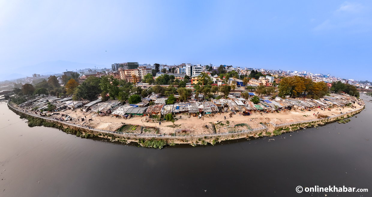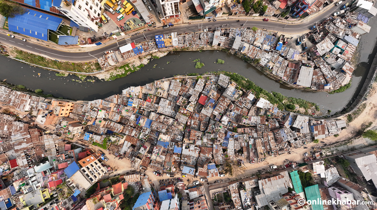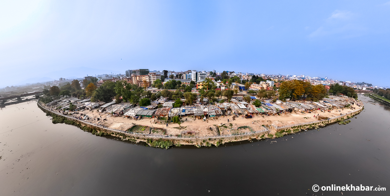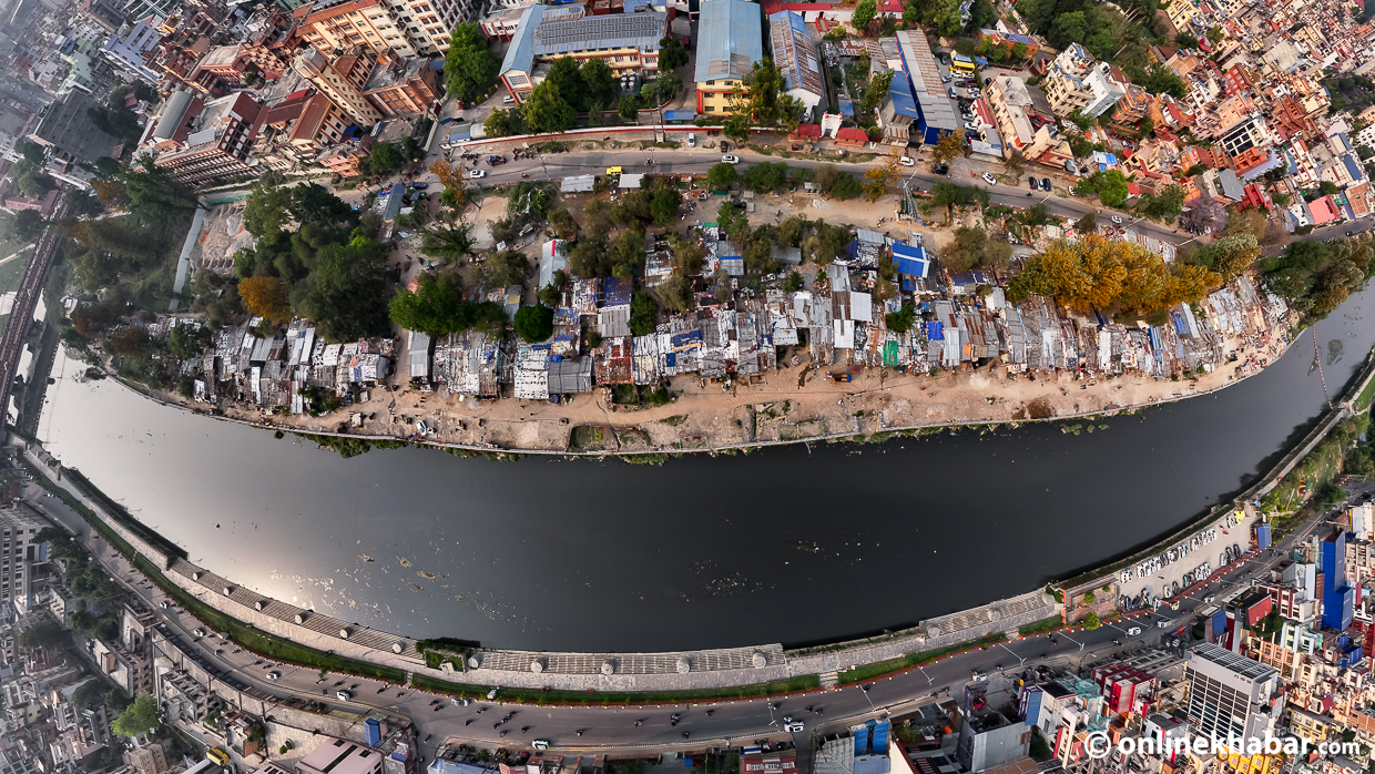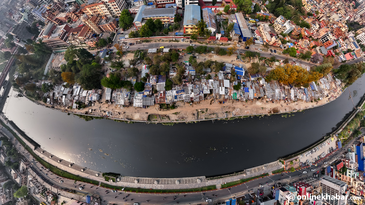 भोली शनिबारबाट हटाउने सूचीमा रहेका थापाथली, सिनामंगल र मनोहराका तीनवटा बस्तीहरू छन् । नदी किनारका ती बस्तीहरू कति अव्यवस्थित रुपमा रहेका छन् ? ड्रोन भ्यूमामा यस्तो देखिन्छ ।
