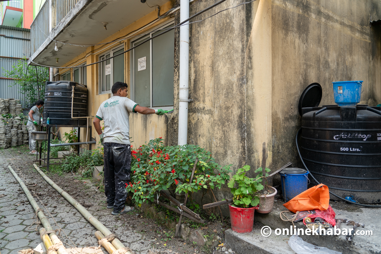 शनिबार बिहानदेखि १४ जना श्रमिकले सफा गर्ने र रंगरोगनको काम गरिरहेका हुन् ।