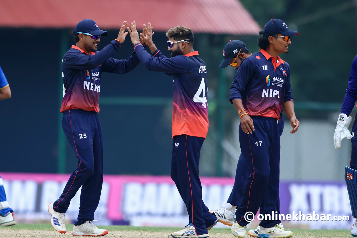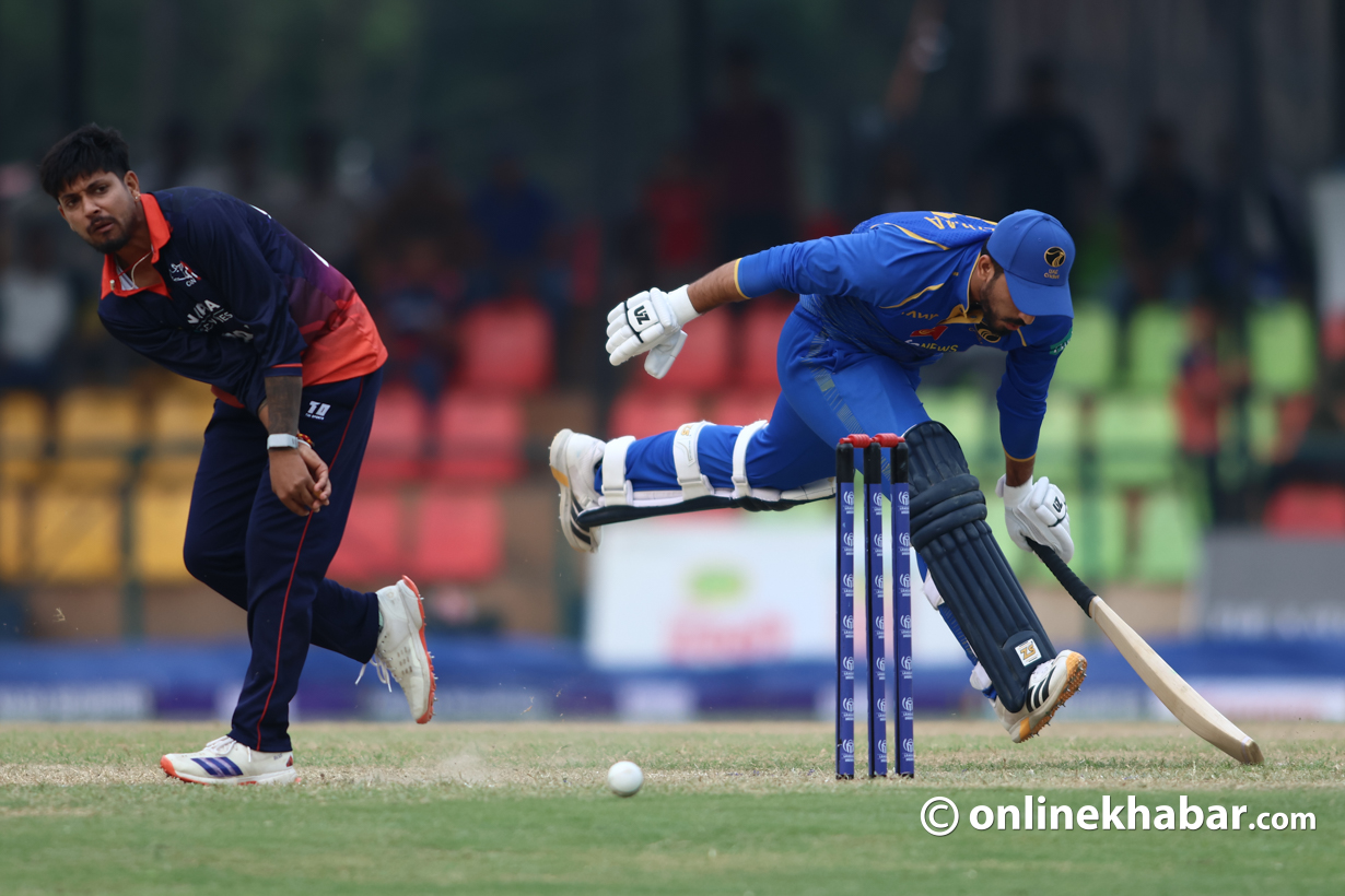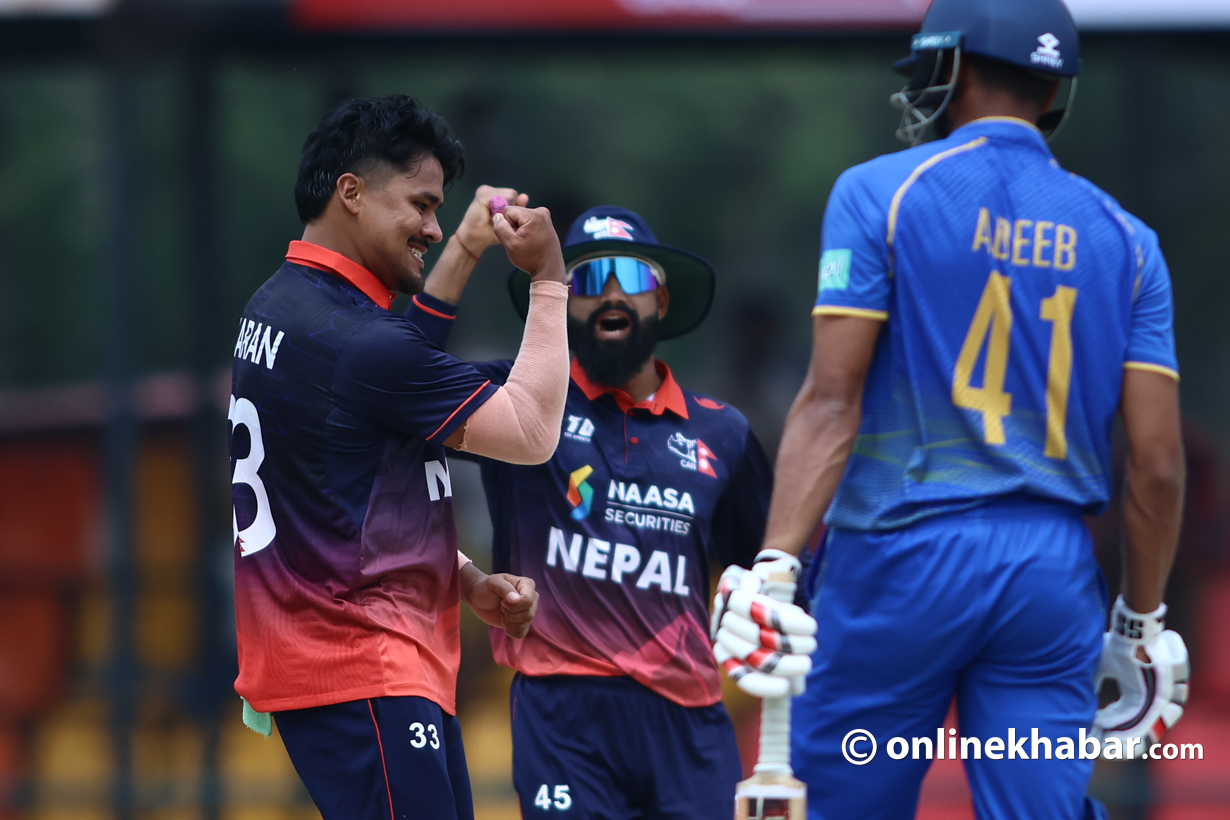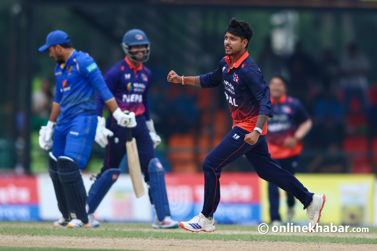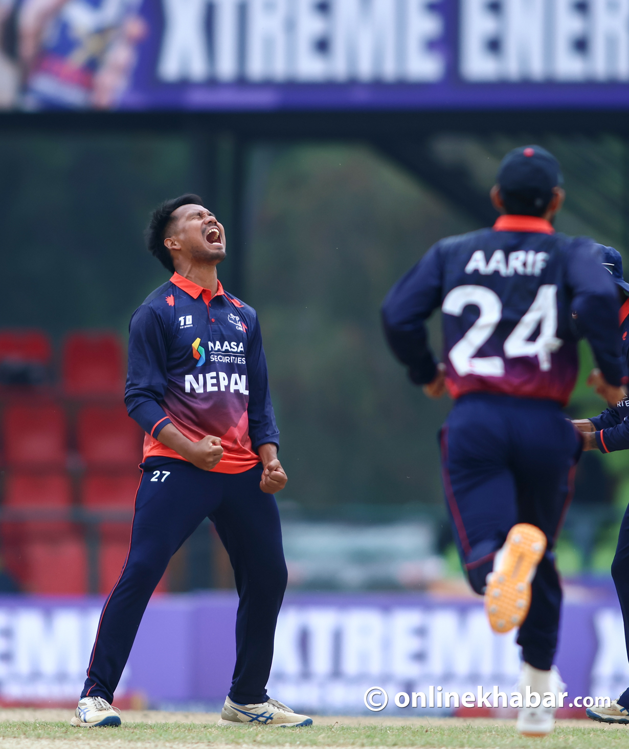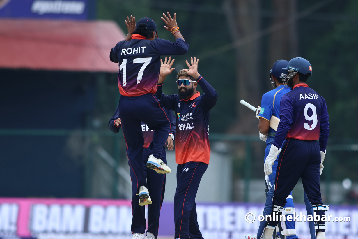 बलरमा नेपालका करण केसीले सुरुदेखि नै पाहुना टोलीका ब्याटरलाई दबाबमा राखे । उनले खेलमा ४ विकेट निकाले । उनीबाहेक सोमपाल कामी र सन्दीप लामिछानेले २–२ तथा दीपेन्द्रसिंह ऐरी र ललित राजवंशीले एक–एक विकेट लिए ।
