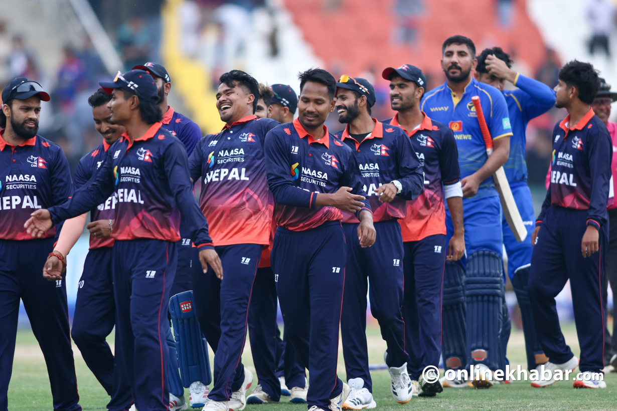 १२ वैशाख, काठमाडौं । आईसीसी विश्वकप क्रिकेट लिग–२ मा दबाबमा रहेको नेपाली क्रिकेट टोली यसपटक युएई र ओमानसँग घरेलु सिरिज खेल्दैछ । सिरिजको पहिलो खेलमा आज नेपालले युएईविरुद्ध संघर्षपूर्ण ३७ रनको जित निकालेर सुखद् सुरुवात गरेको छ ।
