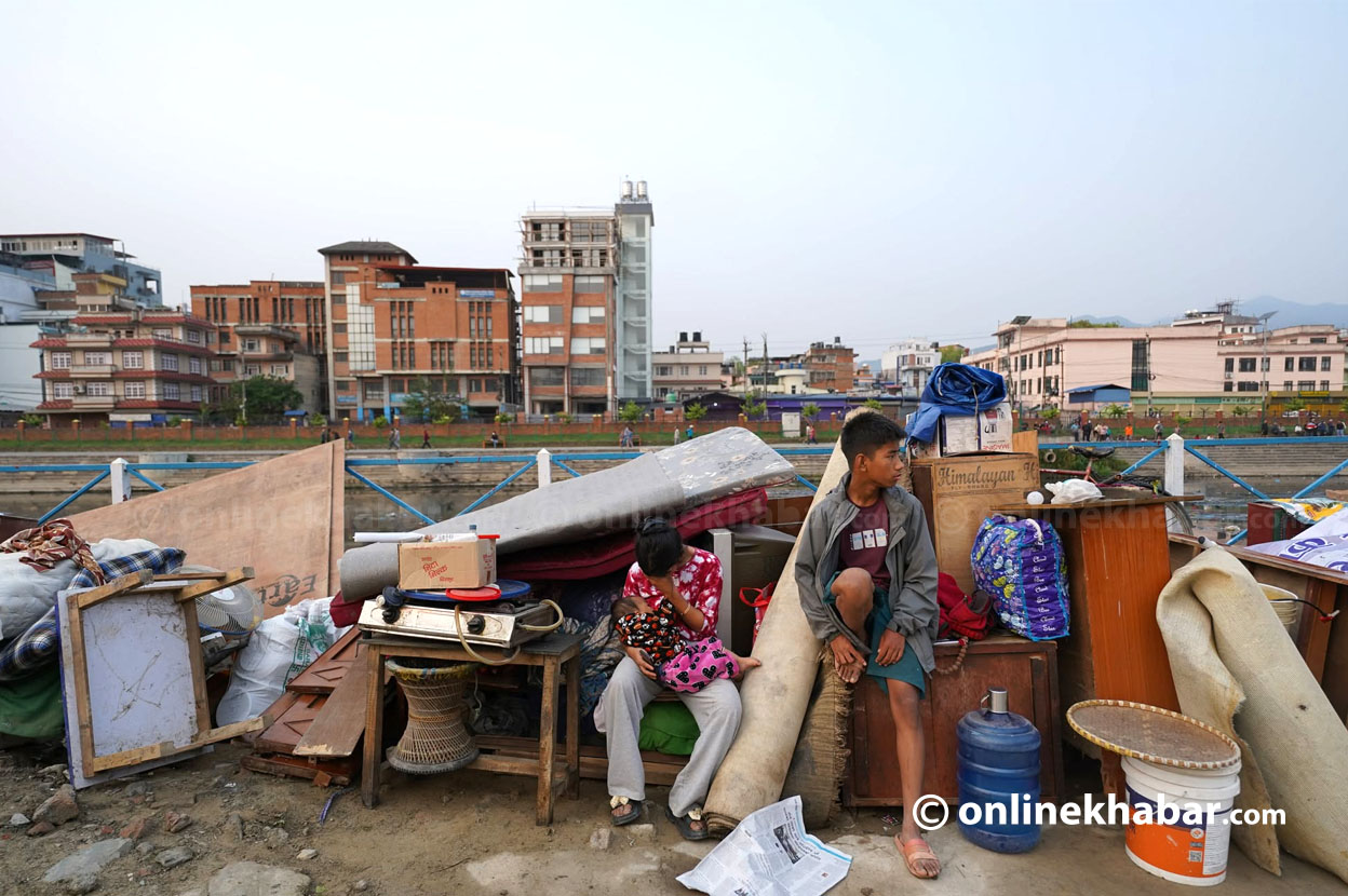 १२ वैशाख,काठमाडौं । शनिबार झिसमिसेमै सुरक्षाकर्मीको बाक्लो भिड थियो । थापाथलीस्थित सुकुमवासी बस्तीलाई सुरक्षाक्रर्मीहरूले घेरेका थिए । नेपाल प्रहरी, सशस्त्र प्रहरी र बेलाबेला घुम्ने नेपाली सेनाको गाडीले बस्तीलाई सतर्क गराएको देखिन्थ्यो ।
