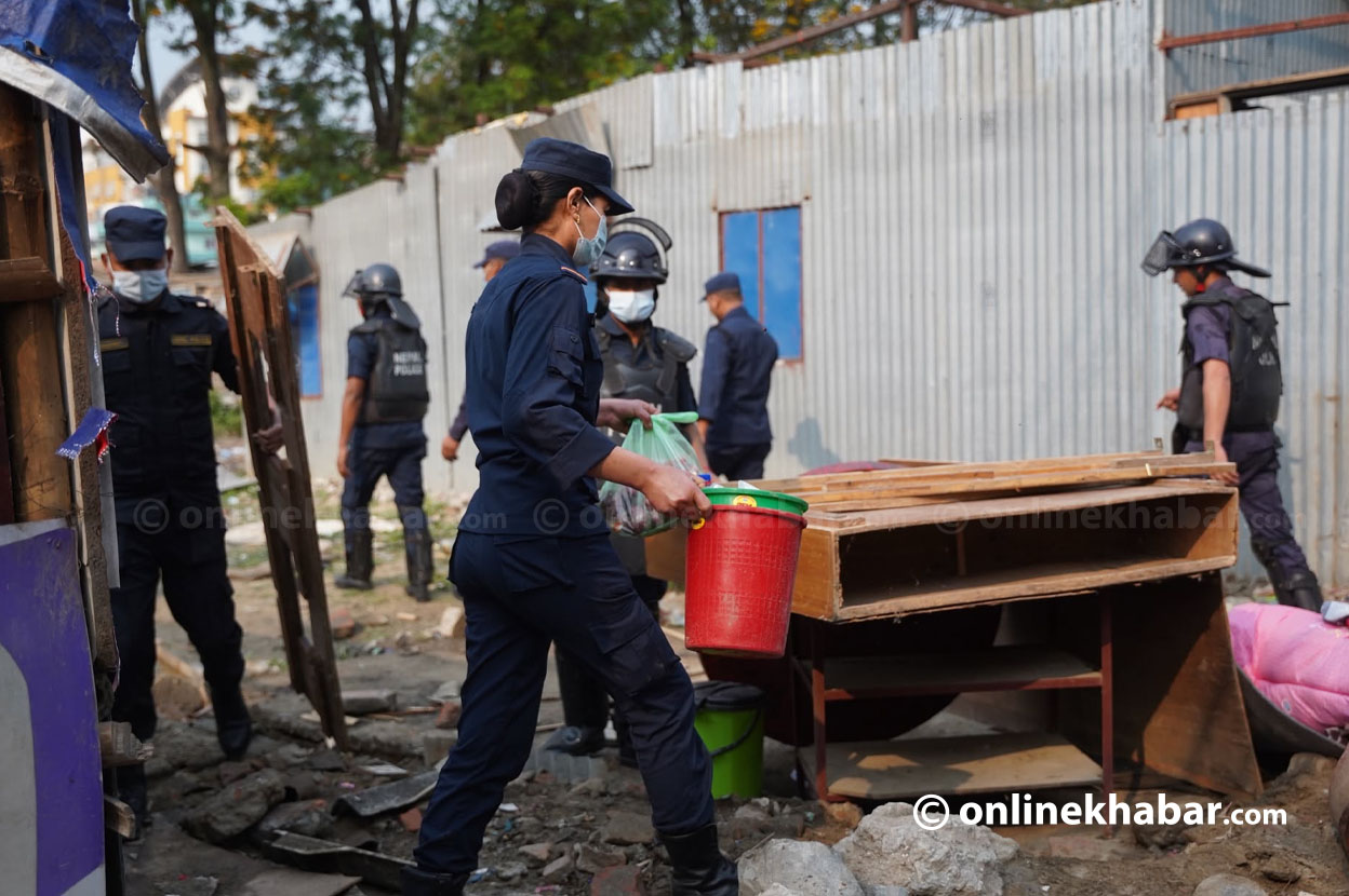 त्यसअघिसम्म सडकबाटै भेटिने संरचना भत्काइरहेको प्रशासनले अब बस्तीभित्रै पसेर संरचना खाली गर्न सुरु गर्यो । प्रहरीले नै सामानहरू सार्न सघाइरहेका दृश्य पनि त्यसबेला देखिए ।
