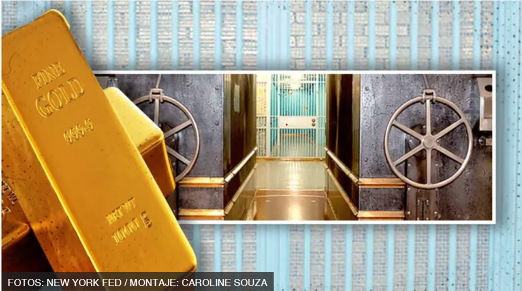 Generated by OK AI. Editorially reviewed.- न्यूयोर्कको फेडरल रिजर्भको गोदाममा विश्वका केन्द्रीय बैंक र सरकारहरूको पाँच लाखभन्दा बढी सुनका बिस्कुट सुरक्षित छन्।