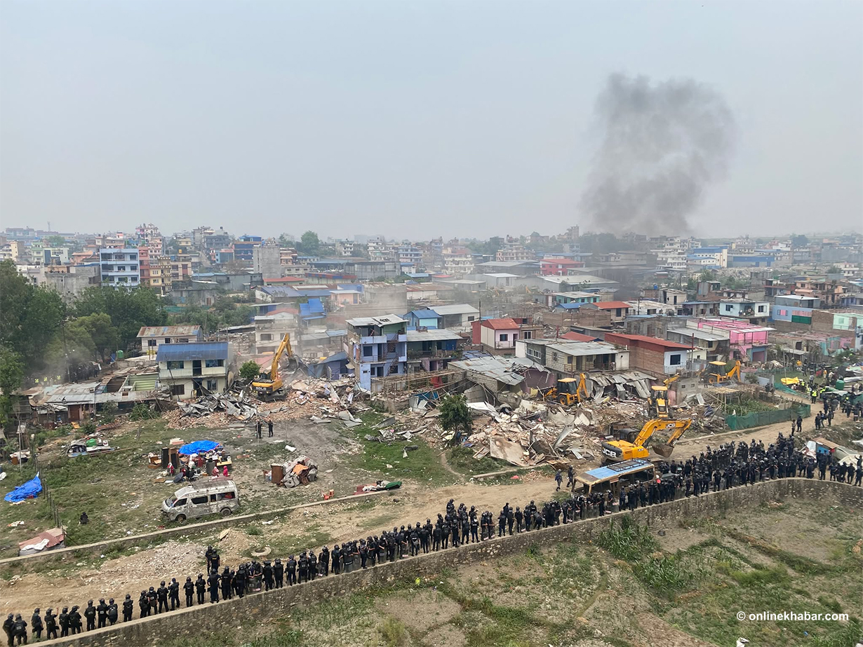 ठूलो संख्यामा सुरक्षाकर्मी खटाएर बस्ती हटाउन थालिएको हो । अहिले डोजर लगाएर घरहरु भत्काउने काम भइरहेको छ ।