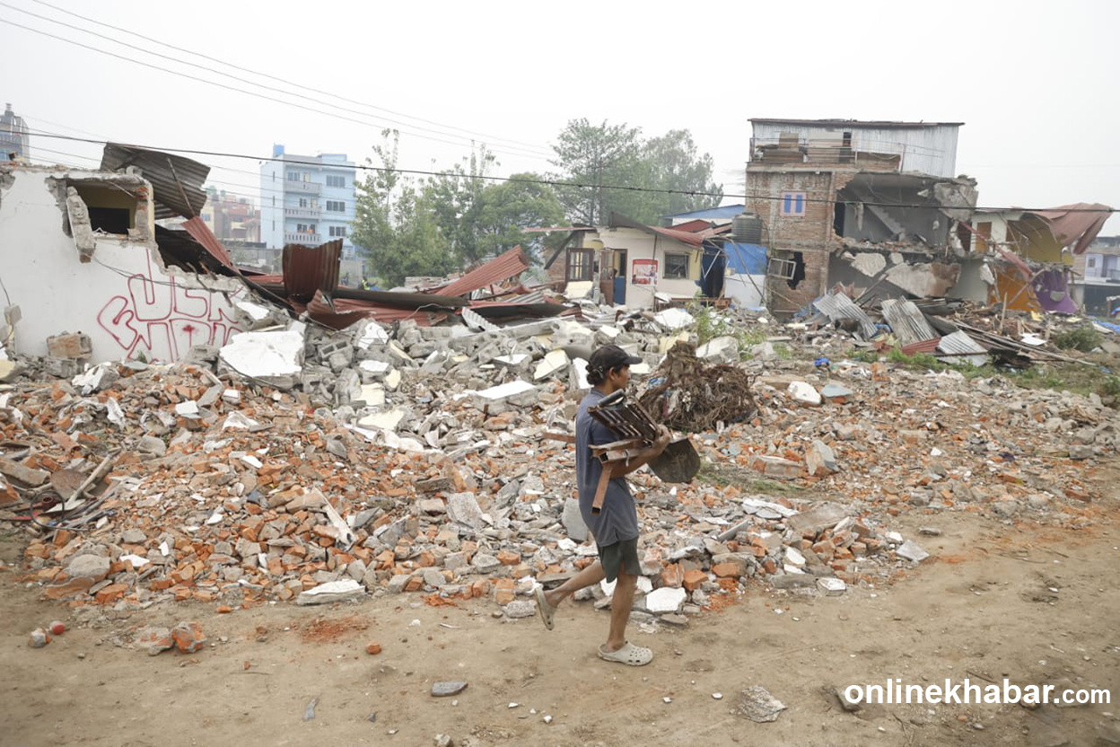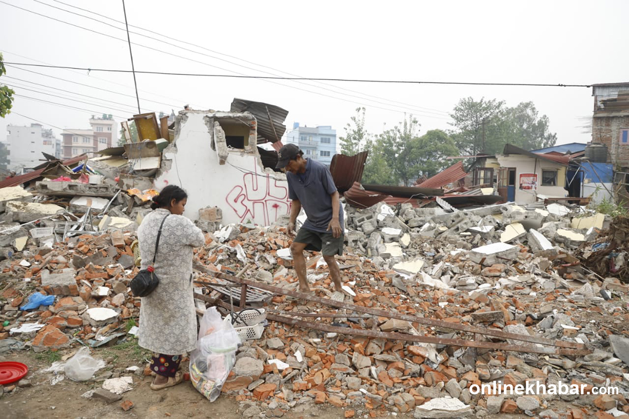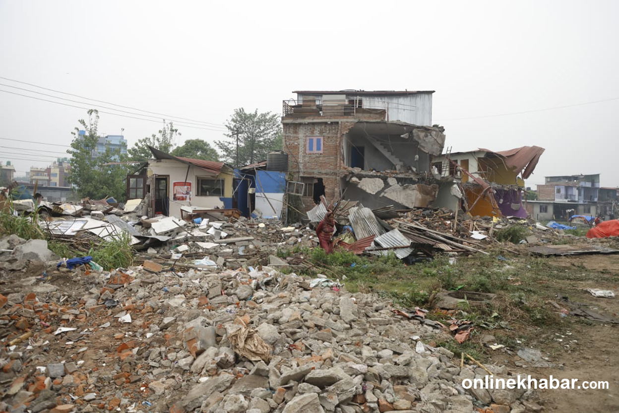 १३ वैशाख, काठमाडौं । प्रहरीको कडा सुरक्षा घेरामा काठमाडौं महानगरपालिकाको टोलीले मनोहरा खोला किनारका सुकुमवासी बस्तीका घरहरु भत्काइरहेको छ ।