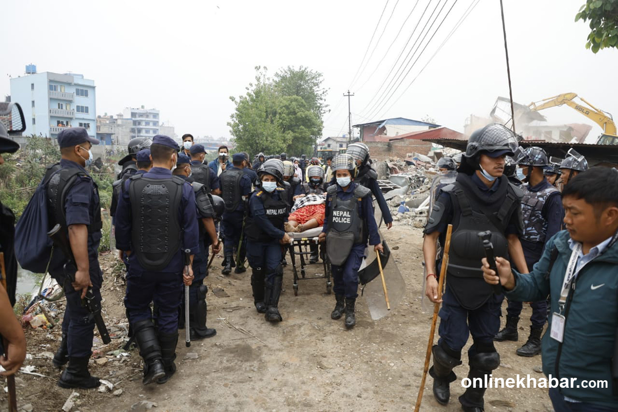 मनोहरा क्षेत्रका घर हिजो नै भत्काउने प्रयास गर्दा स्थानीय विरोधमा उत्रिएका थिए । स्थानीयले ढुंगामुढा गरेपछि सुरक्षाकर्मी समेत घाइते भएका थिए ।