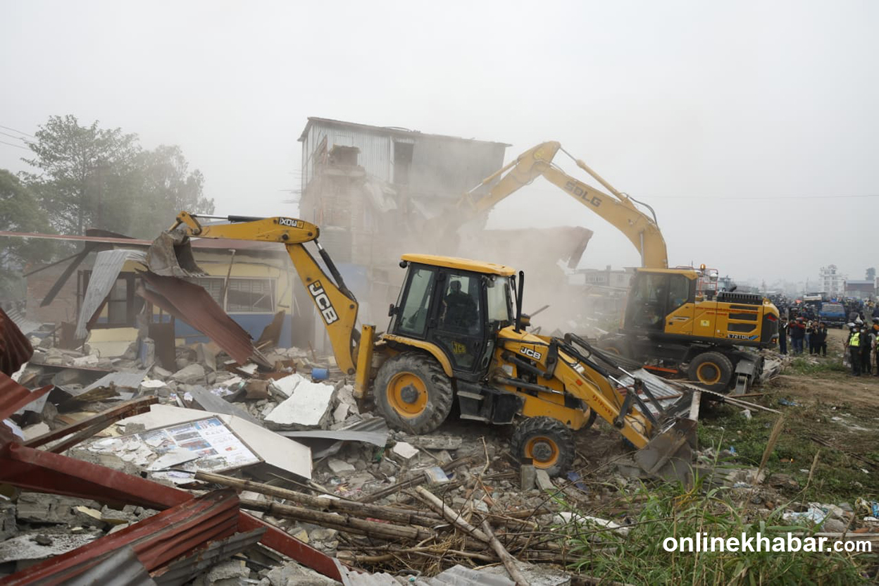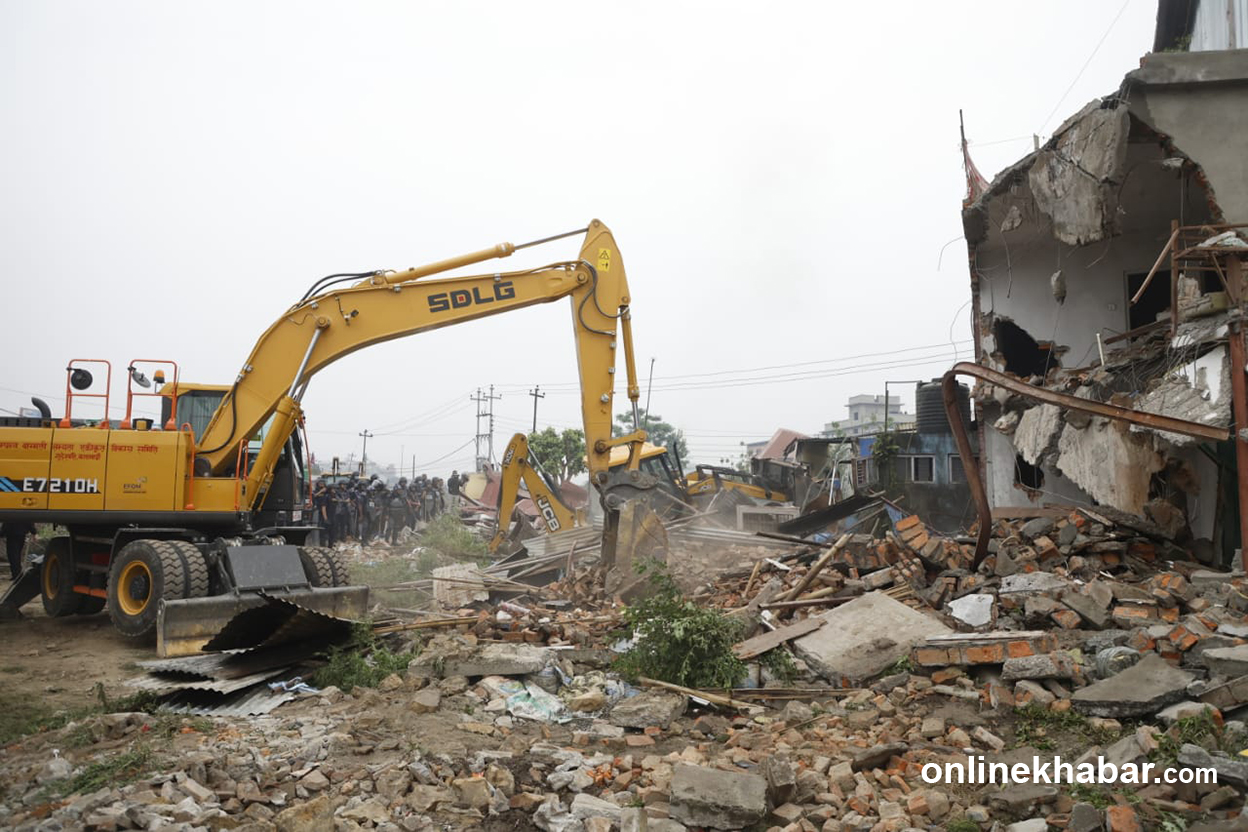 शनिबार काठमाडौं थापाथली र गैह्रीगाउँको सुकुमवासी बस्तीमा डोजर लगाएको महानगरपालिकाले आज मनोहराको सुकुमवासी बस्ती खाली गराइरहेको हो ।