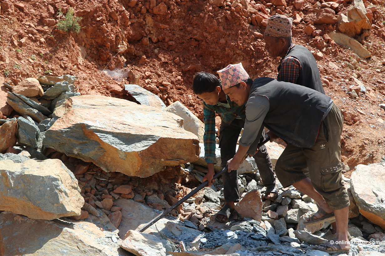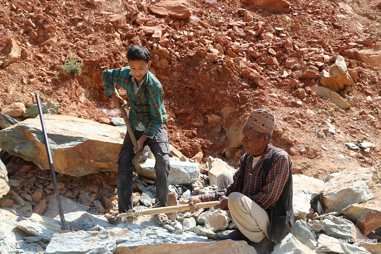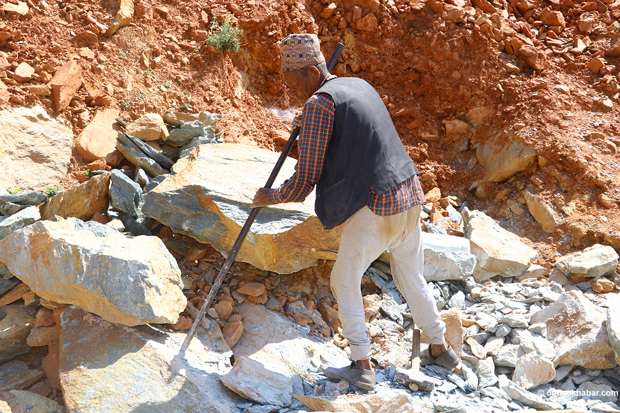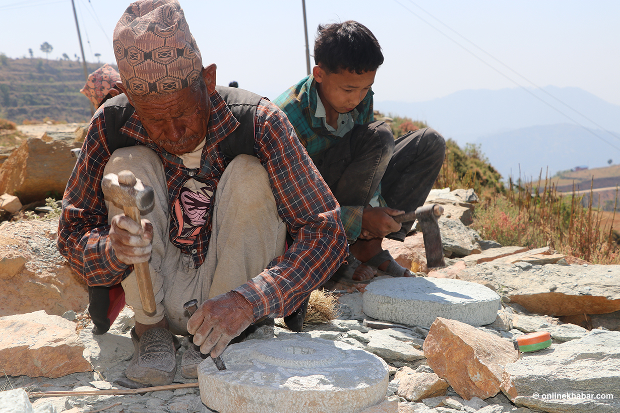 - रेउलेले दमको बिरामी भए पनि ६ जनाको परिवार पाल्न पानी घट्ट, जातो र सिलौटा बनाउने पेसा छोडेका छैनन्।