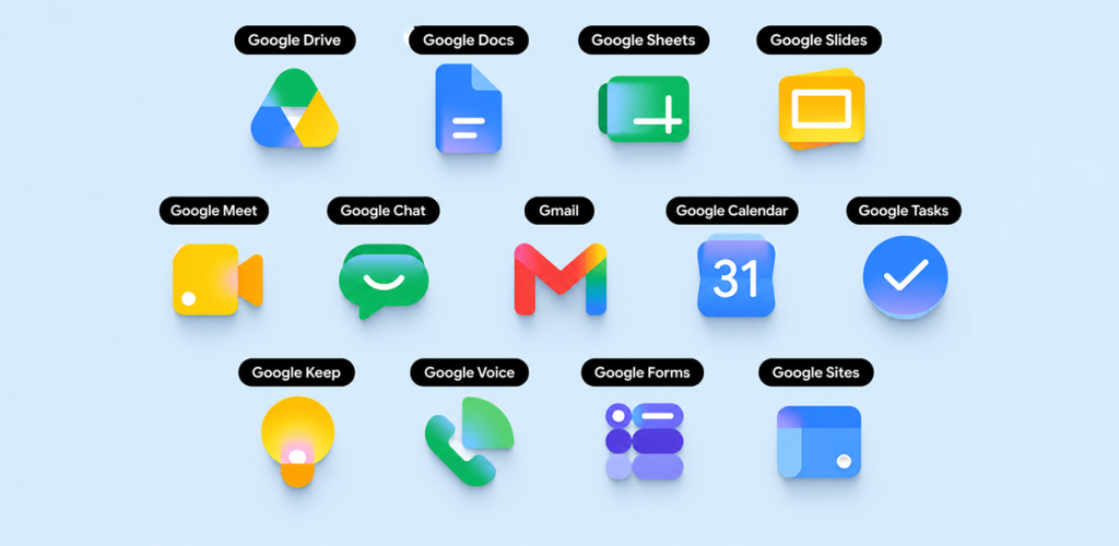 - Google Sheets, Slides, Forms र Chat जस्ता एपहरूमा नयाँ स्वरूप र आइकन परिवर्तन गरिएको छ।
